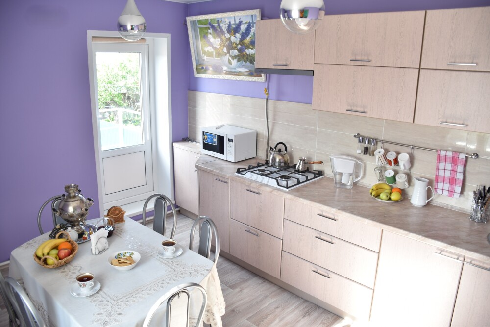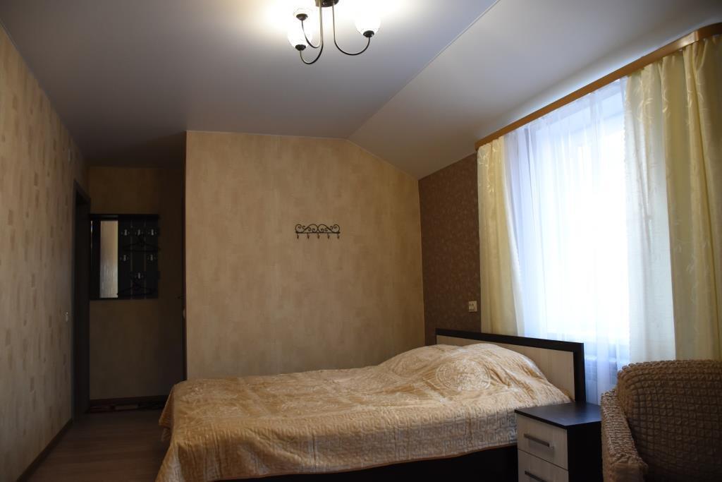 Комната с двуспальной кроватью находится на 2 этаже 2-х этажного дома. Есть выход на небольшую лоджию. В комнате свои удобства (душ, унитаз, раковина для умывания), телевизор. На этаже есть гостевая кухня с холодильником, микроволновкой, плитой, посудой для приготовления и приема пищи.