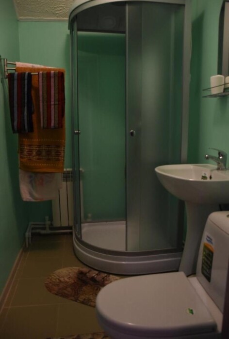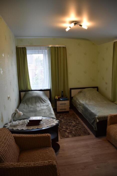 Комната с двумя отдельными кроватями на 2 этаже 2-х этажного дома. В комнате свои удобства (душ, унитаз, раковина для умывания), телевизор. На этаже есть гостевая кухня с холодильником, микроволновкой, плитой, посудой для приготовления и приема пищи.