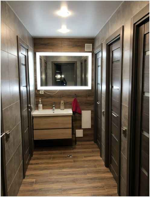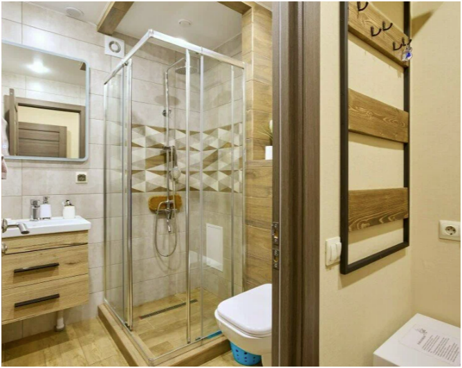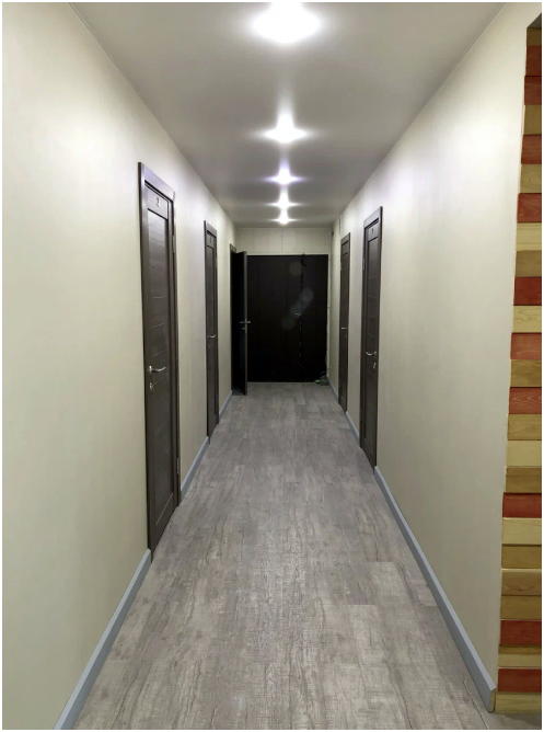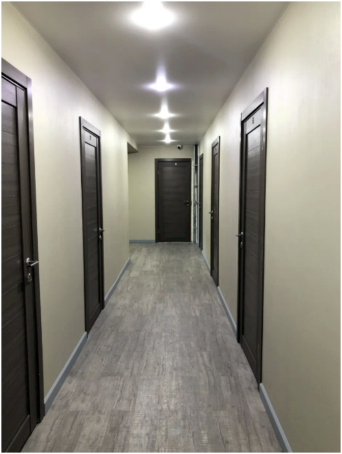На этаже 2 туалета и 3 душевых на 5 номеров.