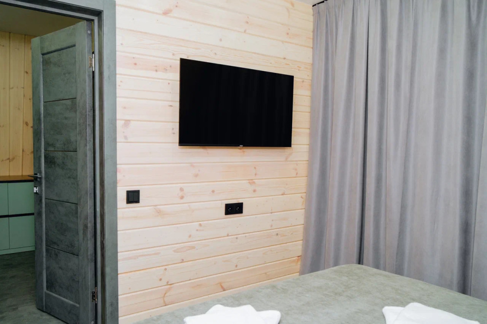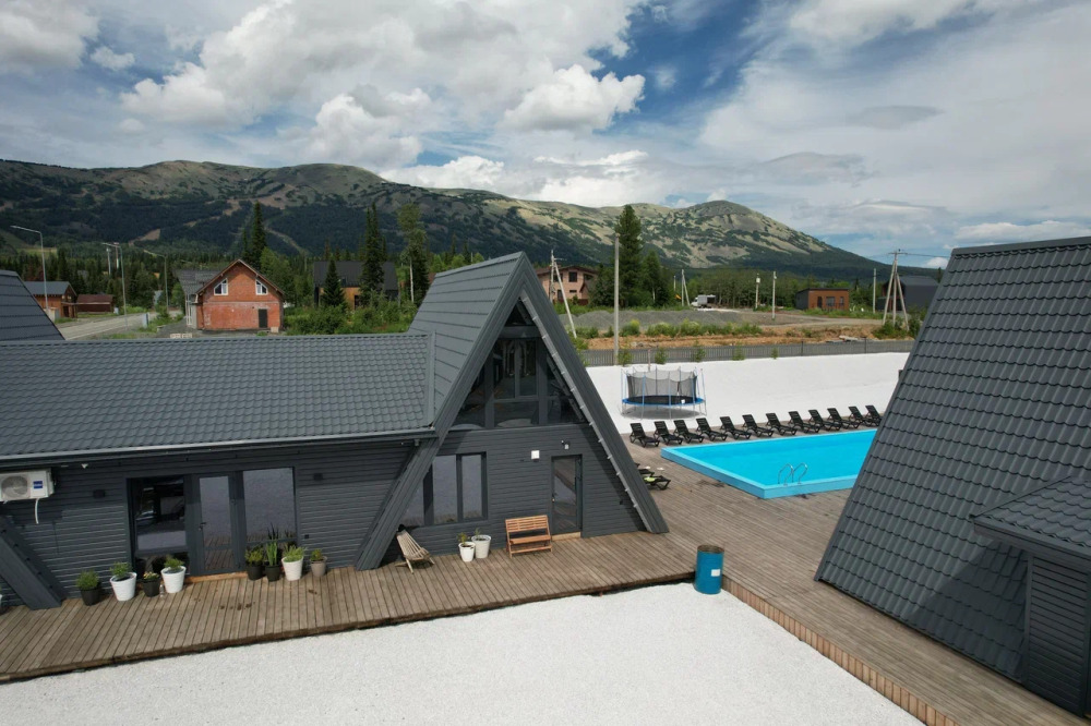 На территории комплекса возможно проживание с домашними питомцами до 5 кг. К услугам гостей - бассейн, костровая зона, прокат горнолыжного инвентаря, трансфер.