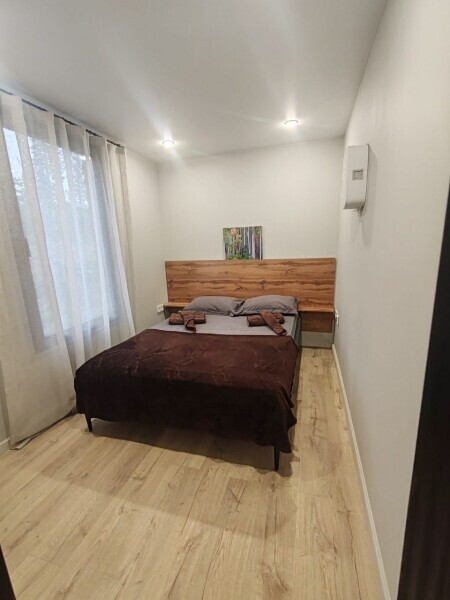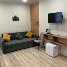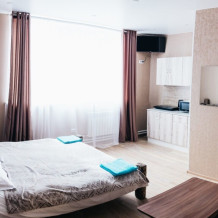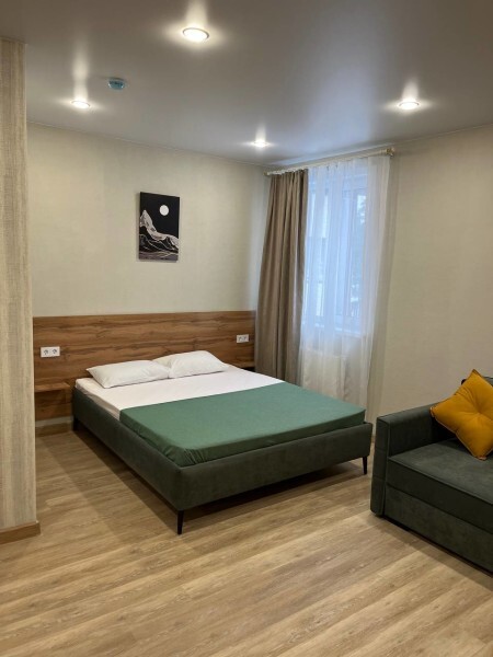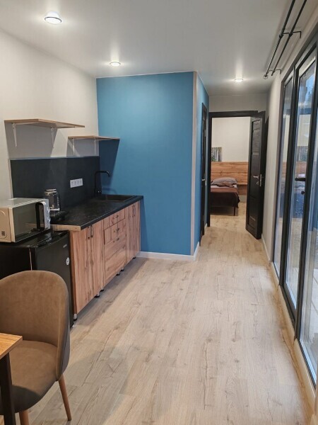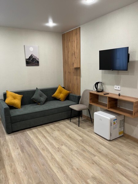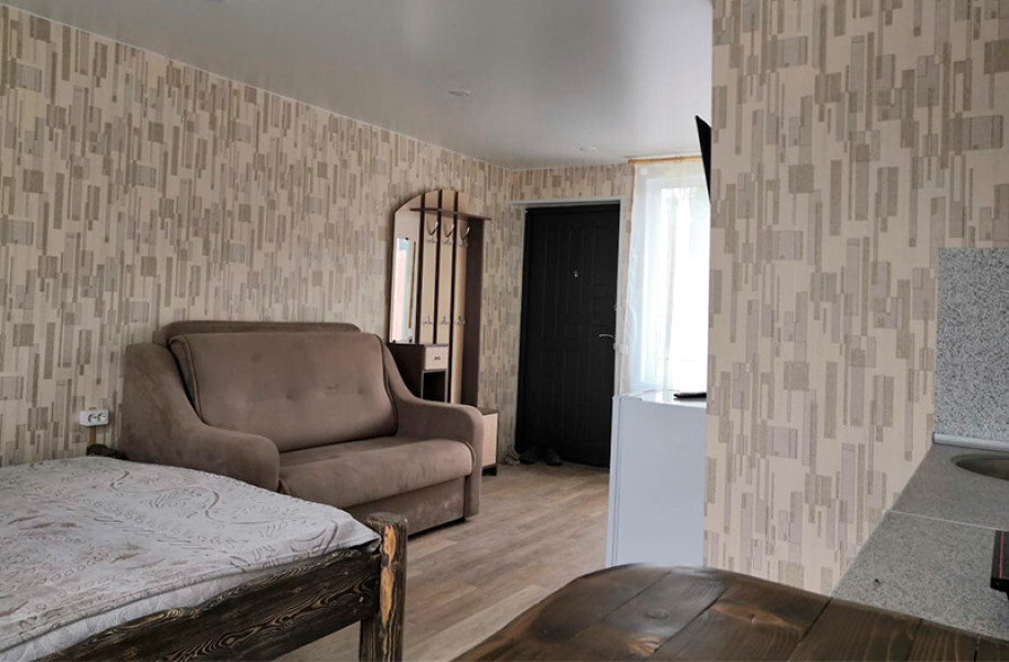 Изолированная спальня, гостиная совмещенная с мини кухней, собственный душ и туалет.