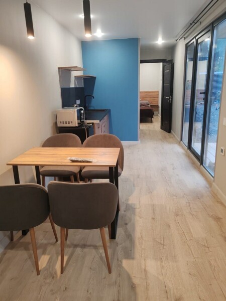 Собственные кухня, душ, туалет! Находится на втором этаже, вход по лестнице через улицу (информация для семей с маленькими детьми).