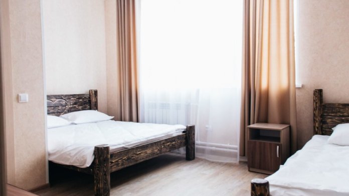 6-ти местный номер - двухкомнатный номер. В этом номере свой холодильник и чайник. В одной комнате большой раскладывающийся диван на 2 места и односпальная кровать, в другой комнате двухспальная и односпальная кровати. Санузел общий, на этаже.