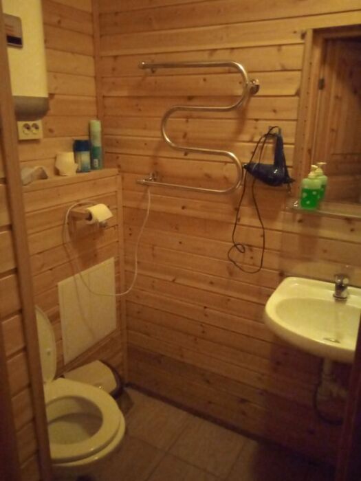 При желании, можно арендовать финскую сауну с каминным залом на 1 этаже.