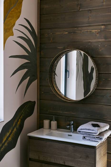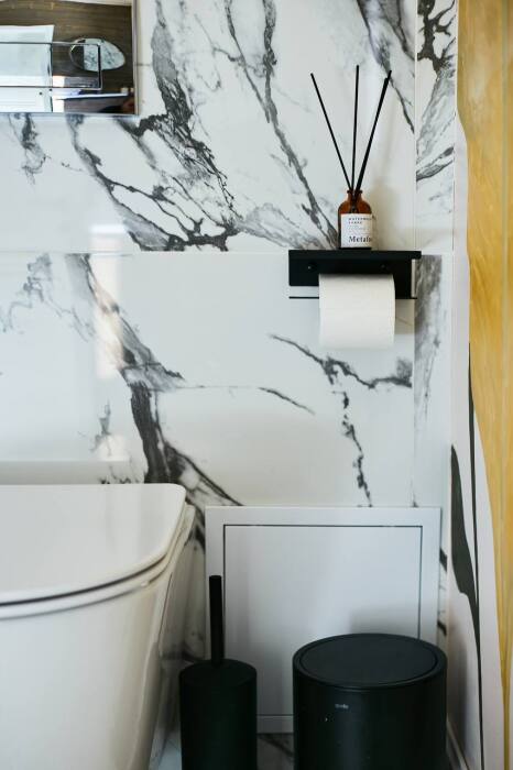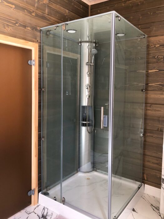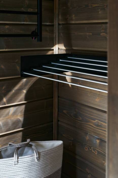 Уборная включает в себя душ, раковину, теплый пол, фен, набор полотенец для каждого гостя, утюг и гладильную доску.