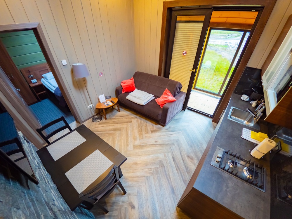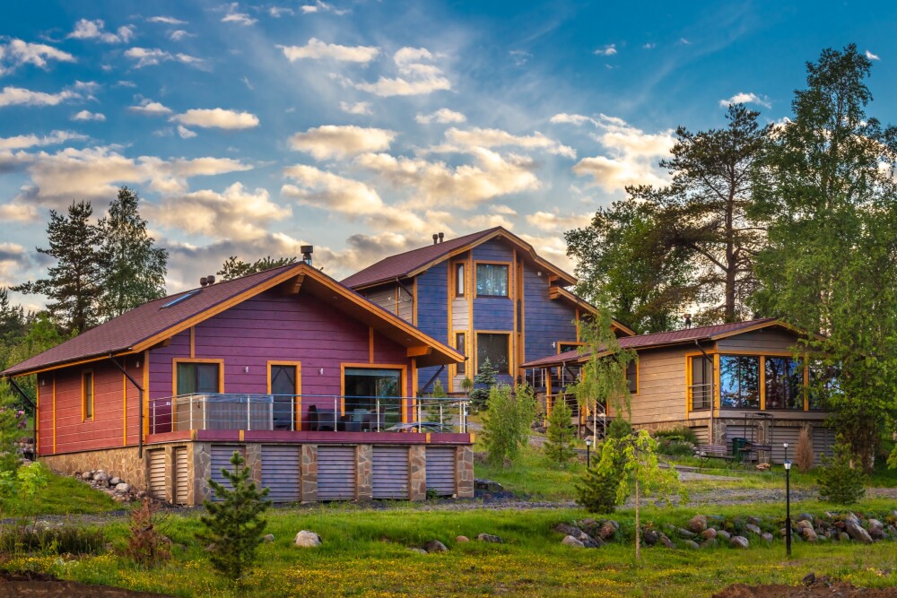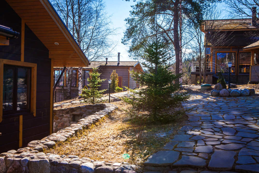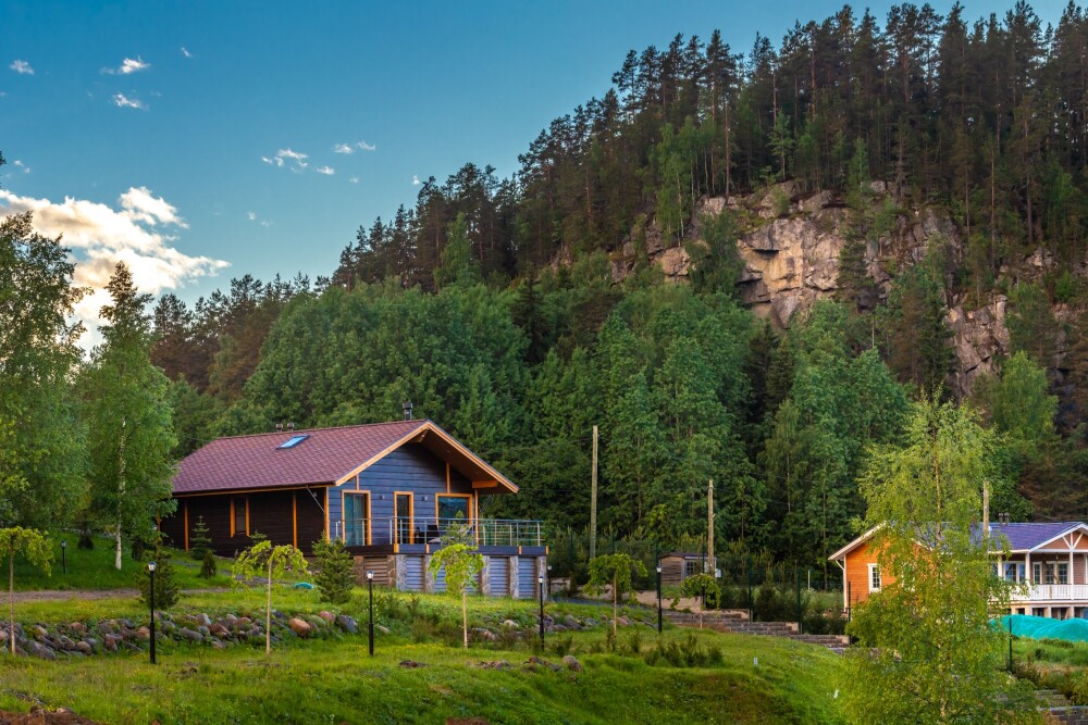 Арендуя домик в нашем комплексе у озера, Вы получаете полный перечень необходимых удобств. В распоряжении будет оборудованная кухня с варочной панелью, набором посуды, холодильником, микроволновой печью, посудомоечной машиной. В домиках грамотная планировка пространства, мягкие спальные места, бесплатный Wi-Fi. К личным услугам сауна, душ, санузел и косметические наборы. Возле каждого строения оборудована зона барбекю, предоставляются принадлежности для приготовления шашлыка. Приятный бонус коттеджей - застекленная просторная терраса с мебелью и панорамным видом на Ладогу.