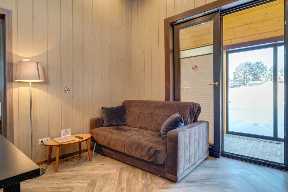 Отличительной особенностью является современный джакузи с подогревом на открытой террасе с видом на Ладожское озеро. С 01 декабря по 01 апреля джакузи не работают. Первый набор для барбекю: пакет угля 15 л и жидкость для розжига 0,5 л предоставляются для гостей комплиментарно при заезде.