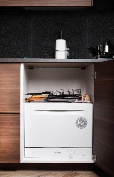 В коттедже есть 2 полноценные спальные комнаты, кухня соединена с гостиной зоной, где особую уютную атмосферу создают панорамные окна, камин и декоративная подсветка. Имеется посудомоечная машина, сауна.