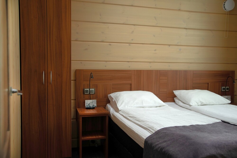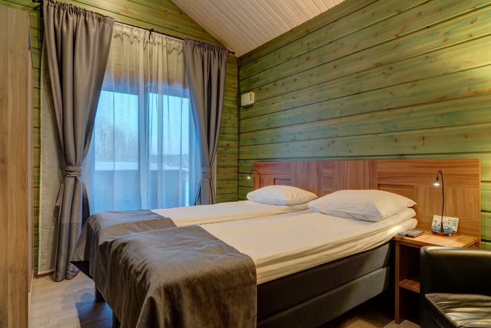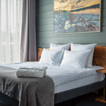 Мы предлагаем 3 варианта размещения - Стандарт Делюкс, Полулюкс, Люкс. Вас ждут: двуспальная, поистине королевская, кровать King-Size; капсульная кофемашина Nespresso; удобный санузел с комфортной душевой кабиной; постельное белье, полотенца, халаты, тапочки; все необходимые косметические принадлежности; мини-кухня (плита, столовая посуда на 2 человек, посудомоечная машина) (кроме Deluxe); роскошная панорама волшебной Ладоги; кондиционер.