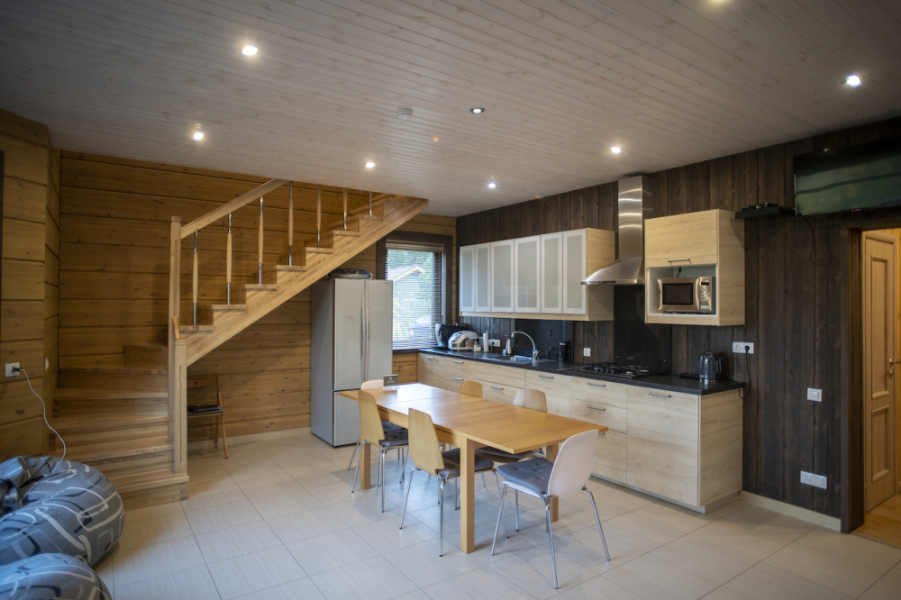 Оснащение: посудомоечная машина, варочная панель, кофемашина, мультиварка, посуда для приготовления пищи, столовая посуда на 8 человек, камин, 4 жк-телевизора, терраса с мебелью, 4 душевых и санузла, постельные принадлежности, полотенца, звукоизоляция, зона барбекю, шампуры на 8 человек, решетки для рыбы и мяса, финская сауна (за отдельную плату).