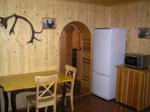 Турбаза представляет из себя коттедж с гостиной, оснащенной камином, ТВ со спутниковой антенной, DVD, караоке; две спальни: на первом этаже с камином и на втором с балконом. Также имеется кухня (холодильник, газовая плита, микроволновая печь) и веранда. В доме находится туалет, холодная, горячая вода.