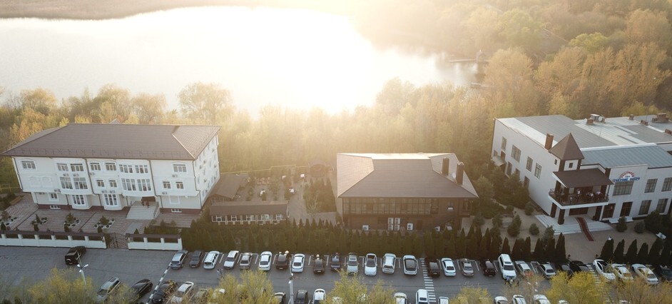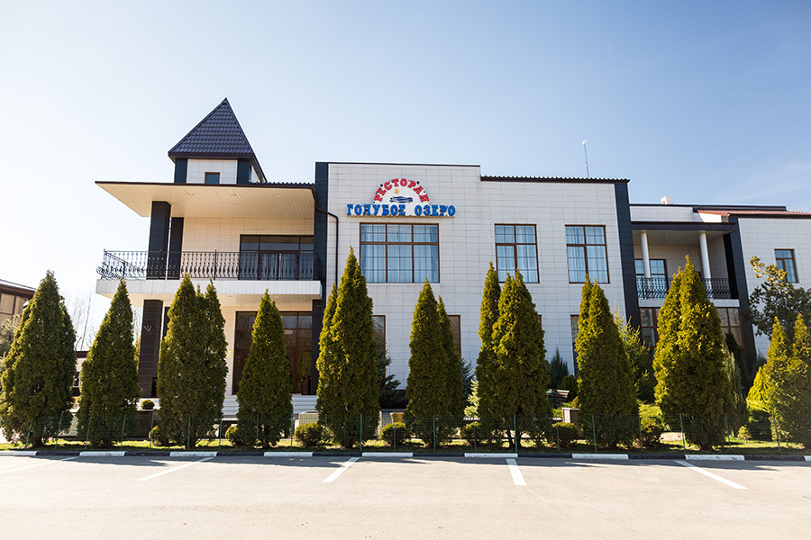 Рестораннo-гостиничный комплекс «Голубое озеро» в стороне от увеселительных заведений Левого берега, среди кудрявой зелени, окаймляющей бирюзовое озеро. В теплые деньки, которые нас балуют достаточно долго - с весны почти до середины осени, наши гости любят отдыхать за столиками летней площадки, расположенной в непосредственной близости от живописного берега Голубого озера. Здесь можно насладиться не только вкуснейшими угощениями и прекрасным видом, но также и прохладным лёгким бризом. В дождливые летом дни можно провести время в крытой беседке, либо за столиками деревянного летнего павильона. Здесь, как на первом, так и на втором этаже сможет расположиться большая компания. В холода для вас распахнет двери громадный зимний ресторан.