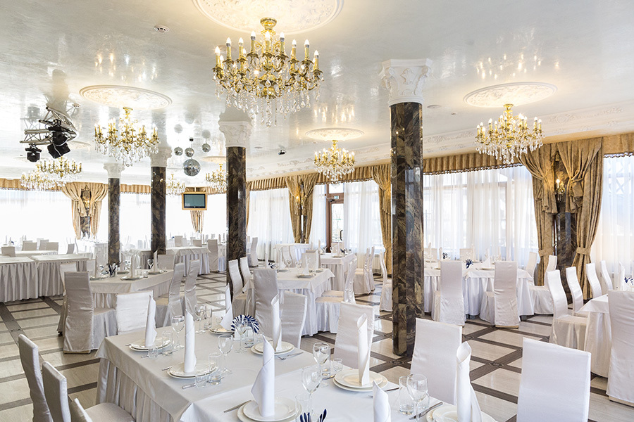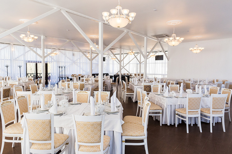 Торжественное событие, важные встречи, юбилейные банкеты или свадьбы наши гости чаще всего предпочитают проводить в роскошных залах нового здания, где на 1 этаже с удобством разместятся 150 гостей, а на 2 этаже - 400. Вы сможете выбрать интерьер, более всего радующий ваш взгляд - мы рады предоставить на Ваш выбор: Оранжерею (Стеклянный зал); Каминный зал; Банкетный зал; Летние площадки. Если же Вы планируете пригласить больше 400 гостей, Вы можете арендовать весь ресторанный комплекс, а это ни много, ни мало, а 1000 мест.
