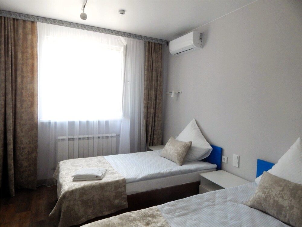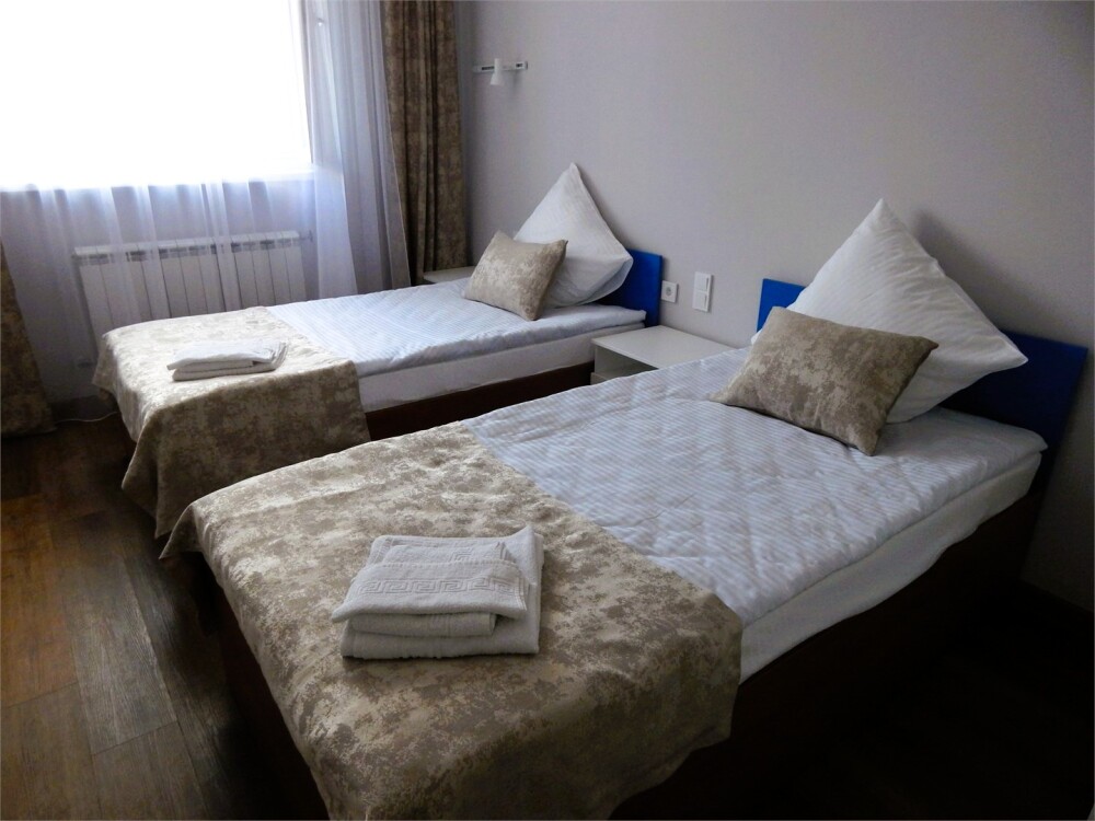 Уютный номер на 2-х человек. Завтрак входит в стоимость проживания В номере две совмещённые кровати с возможностью разъединения , место для хранения одежды, ванная комната, душ, гигиенические принадлежности, смарт телевизор, интернет, кондиционер.
