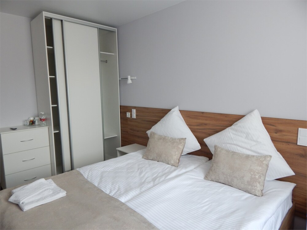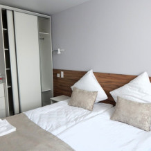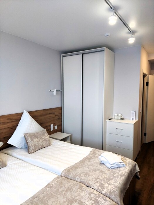 Новые уютные 2-местные номера с двумя кроватями и один номер люкс с большой двуспальной кроватью.