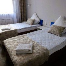 Уютный номер на 2-х человек. Завтрак включён в стоимость номера. В номере две удобные кровати размером 100х200см с ортопедическими матрасами, место для хранения одежды, ванная комната, душ, смарт телевизор, интернет,