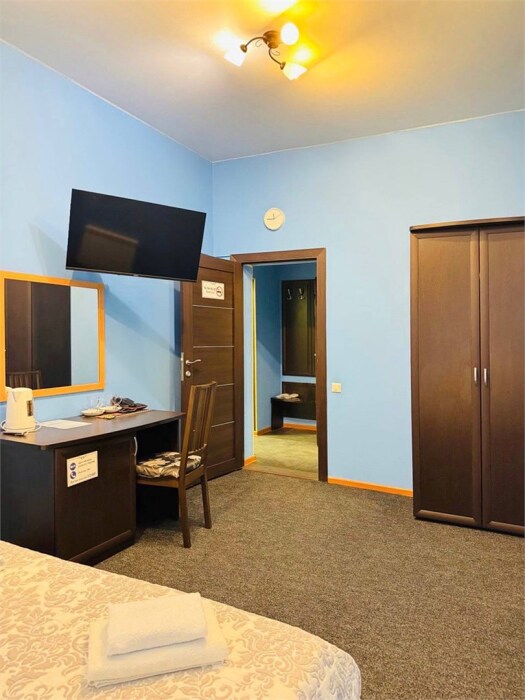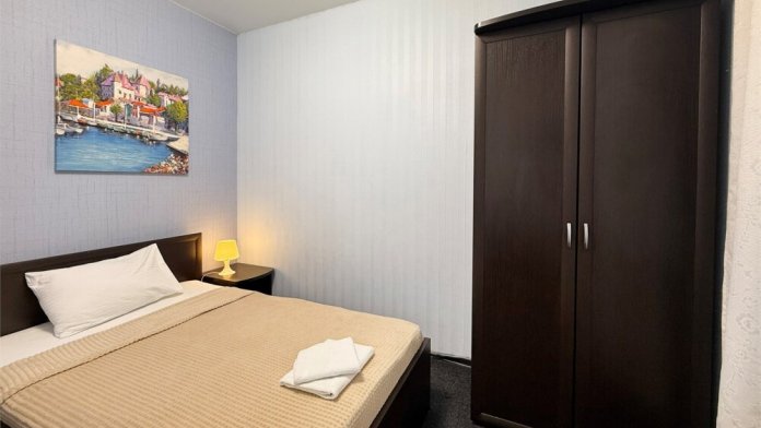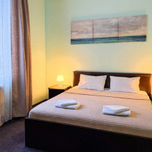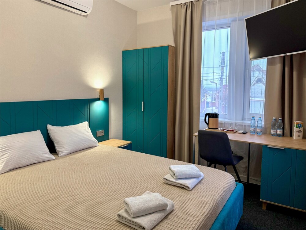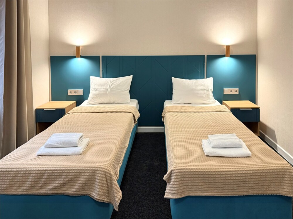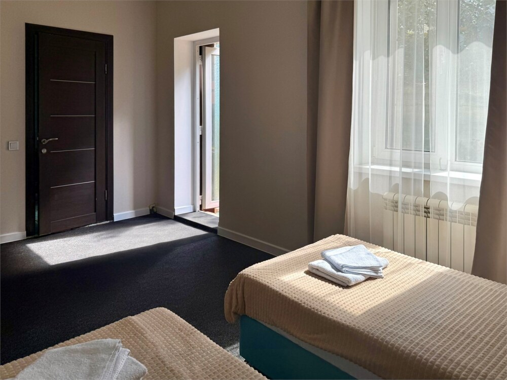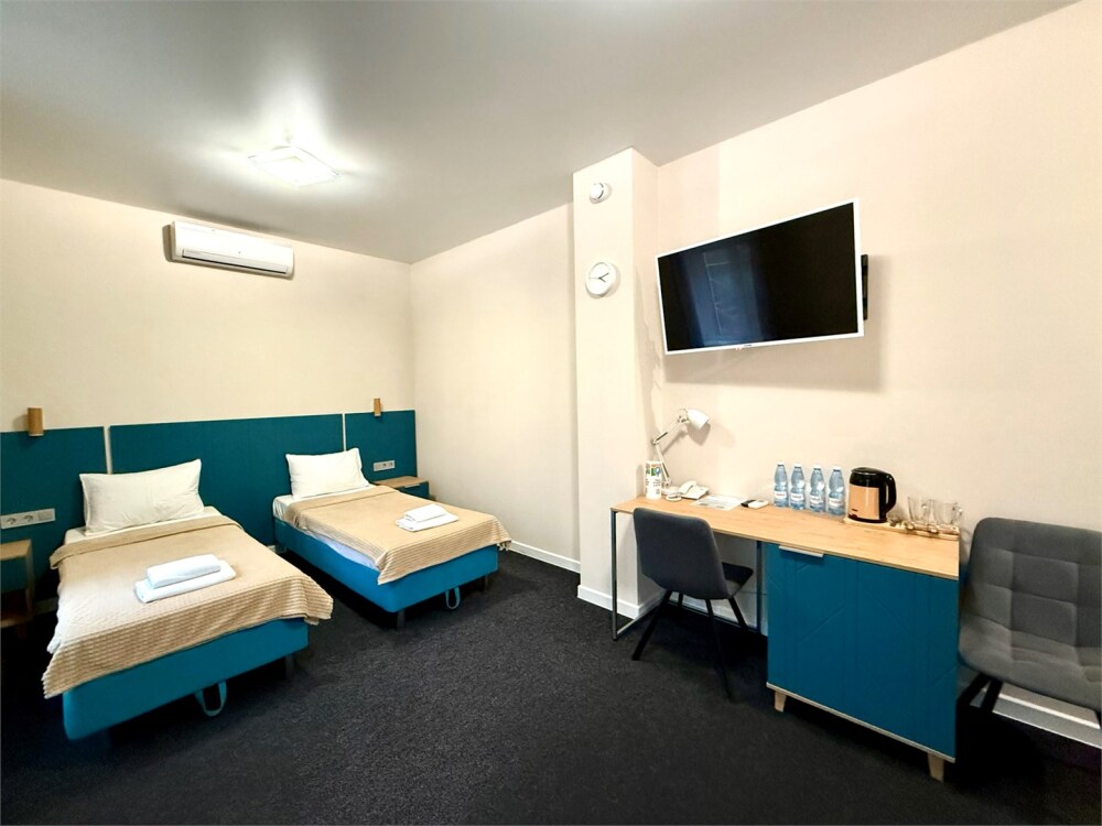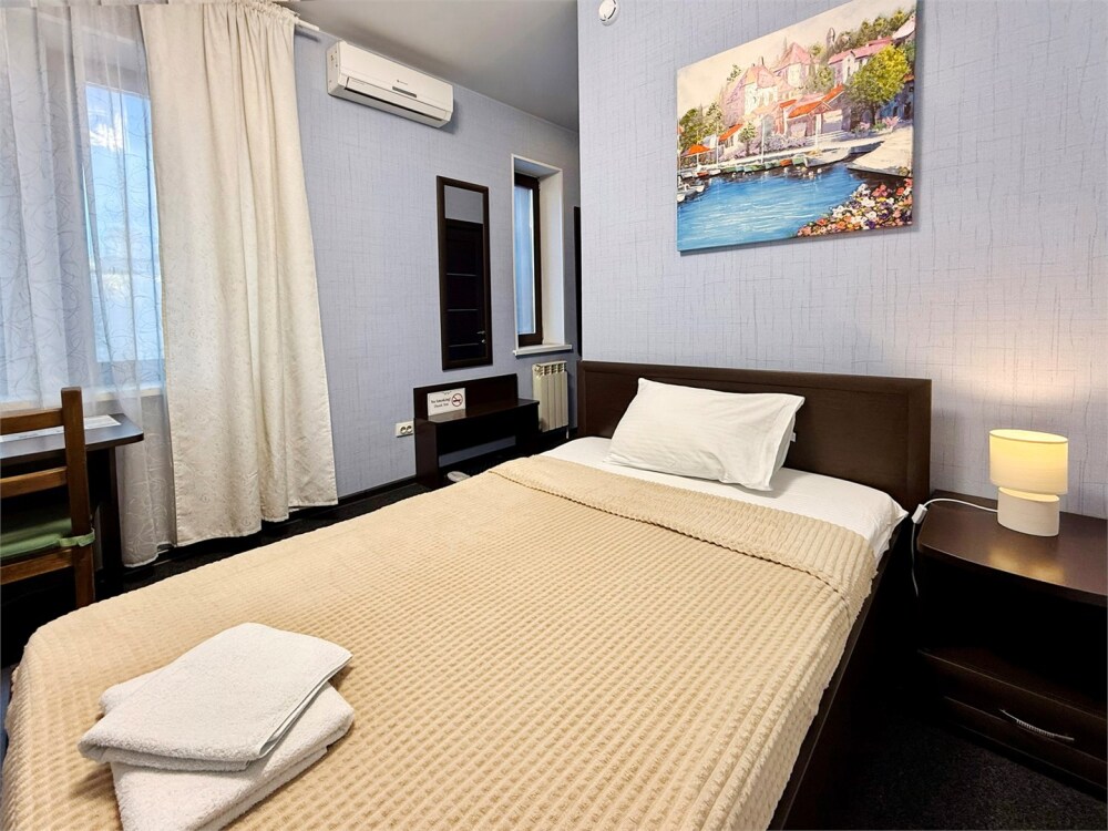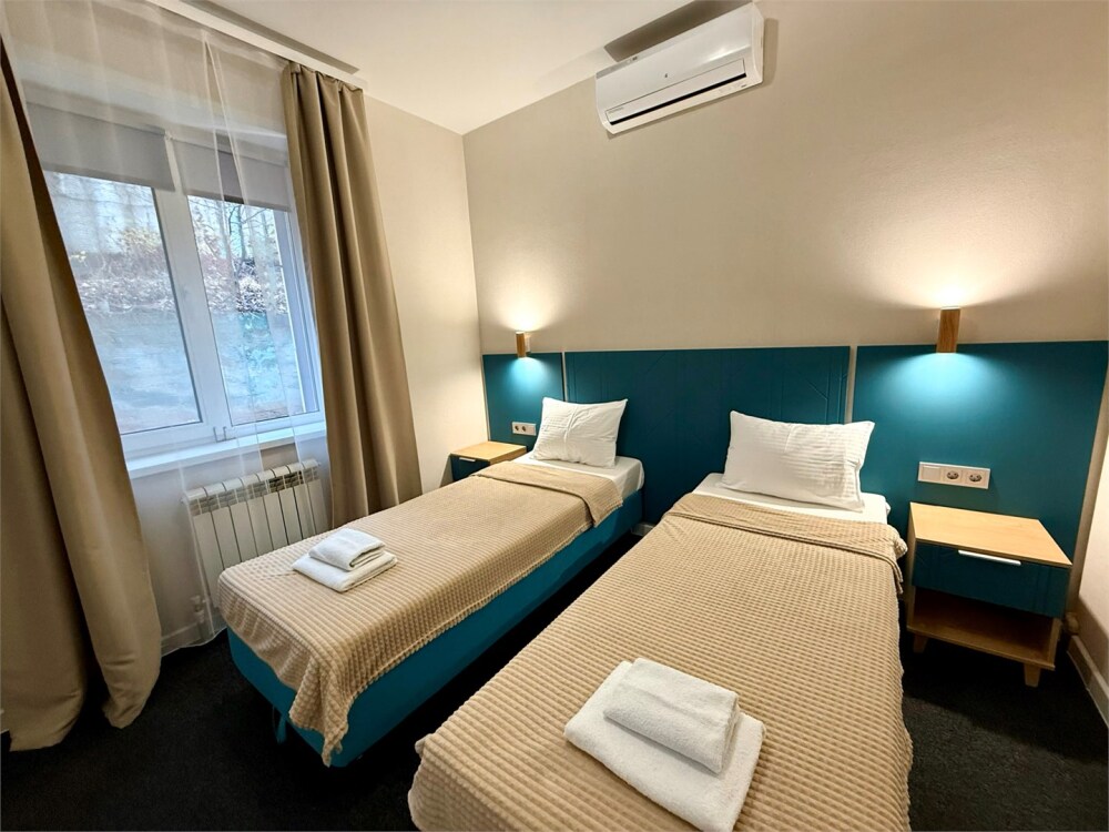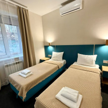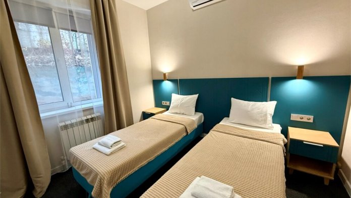 В каждом номере: собственный санузел, большая 2-спальная кровать, ТВ, Wi-Fi, рабочая зона, холодильник, фен, телефон для связи с ресепшеном.