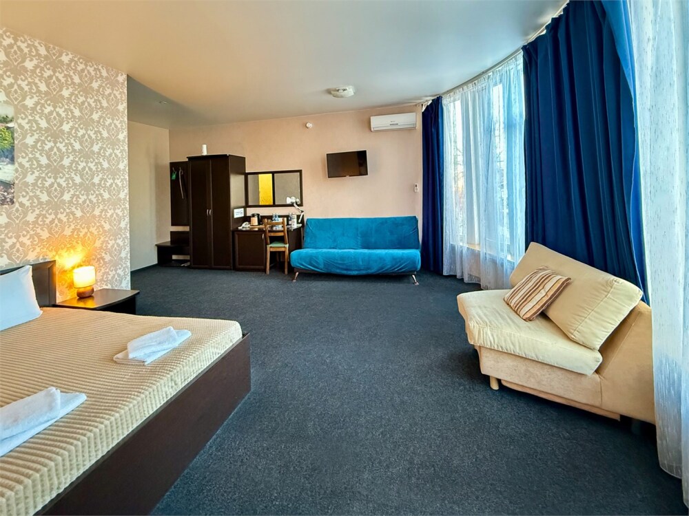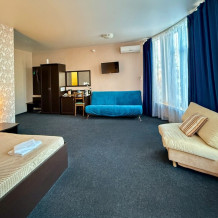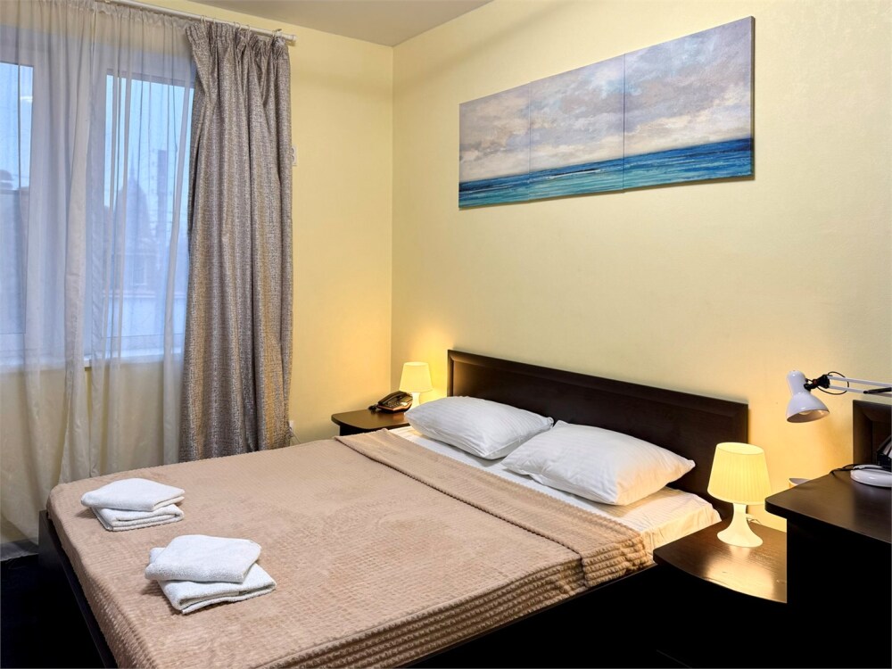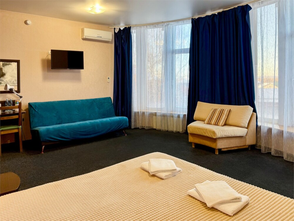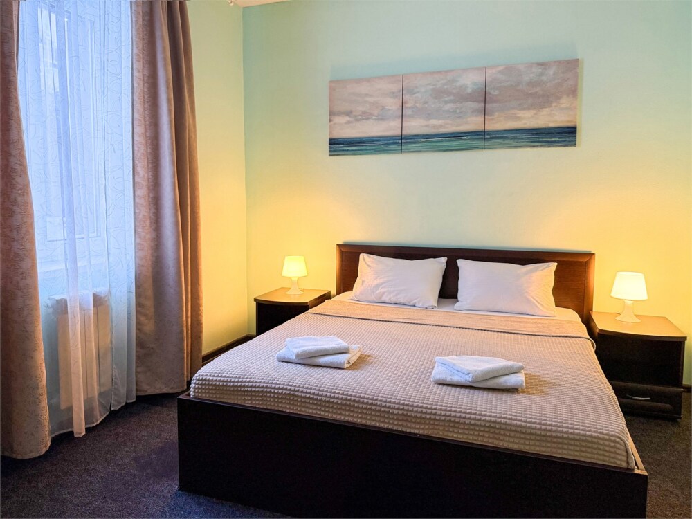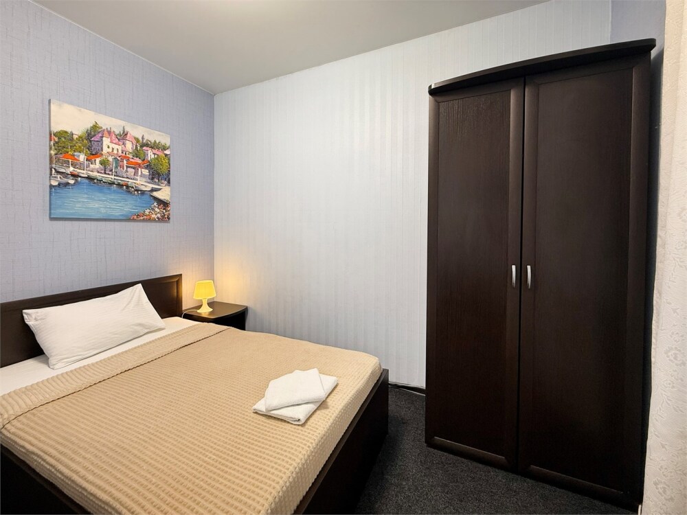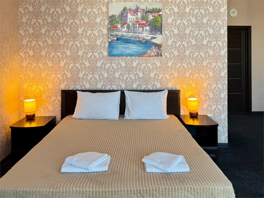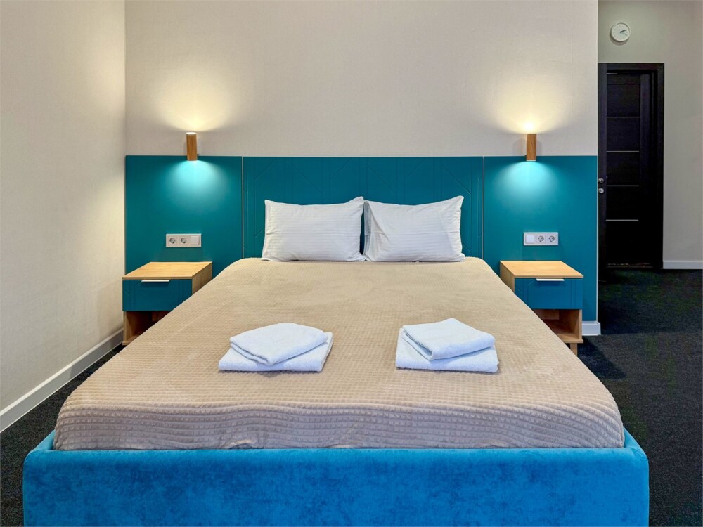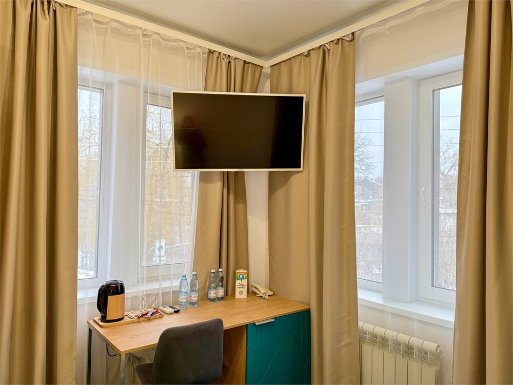 В каждом номере: собственный санузел, большая 2-спальная кровать, ТВ, Wi-Fi, рабочая зона, холодильник, фен, телефон для связи с ресепшеном.