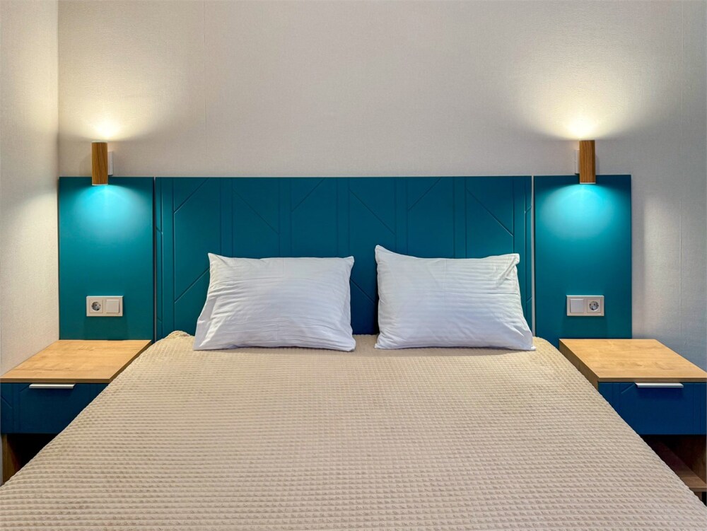 Уютный и светлый номер с возможностью выбора: с двуспальной кроватью (160x200) или с 2 односпальными кроватями (80x200).
