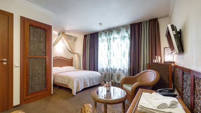 Гостям предлагаются чистые и хорошо оборудованные номера категории Стандарт, Полулюкс и Люкс, а так же Семейные номера с современным интерьером. В номерах есть все необходимое для комфортного проживания, включая кондиционер, холодильник, телевизор, новые кровати с удобными матрасами, белоснежное постельное белье и полотенца. В ванной комнате номера Стандарт - душевая кабин, в номере Комфорт имеется ванна-джакузи, а так же во всех номерах установлены фены и имеются все необходимые косметические принадлежности. Доступ к Wi-Fi бесплатный.