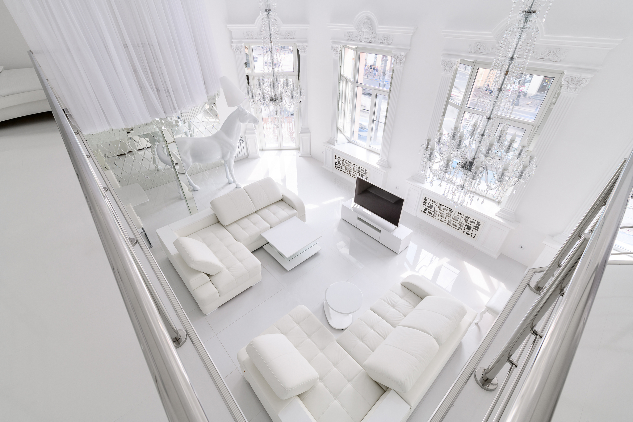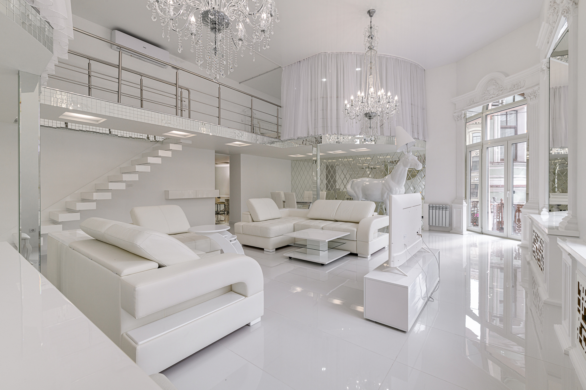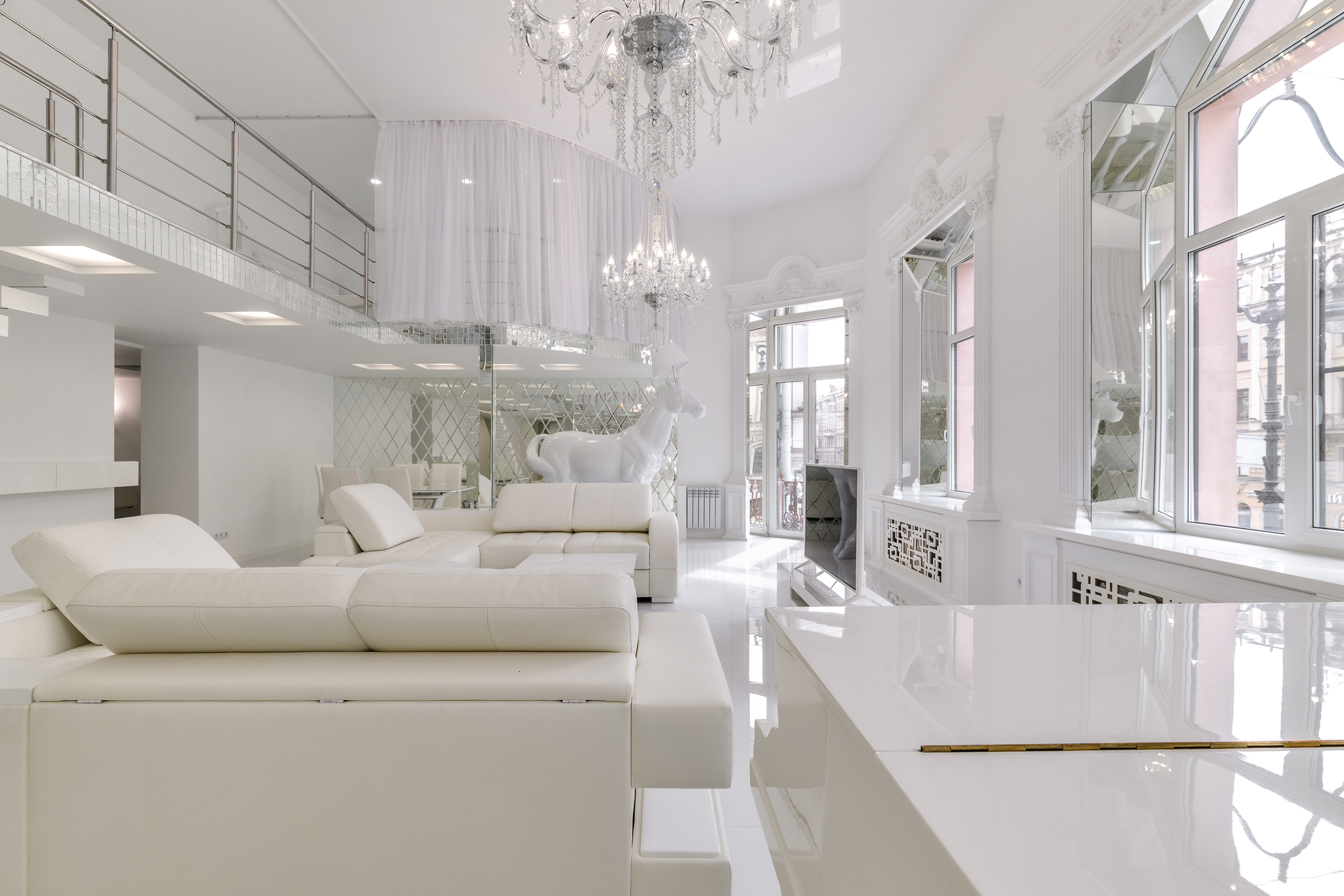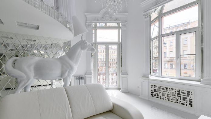 ART DE VIVRE SUITE: Ослепительно белые двухуровневые апартаменты 150 м² с арт-объектом белой лошадью на Невском, подарят незабываемые впечатления.