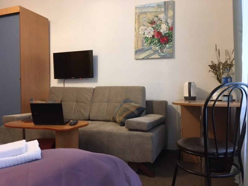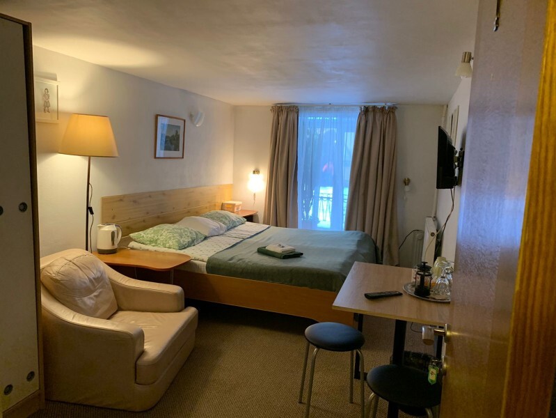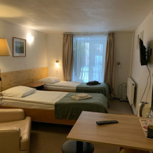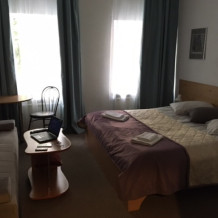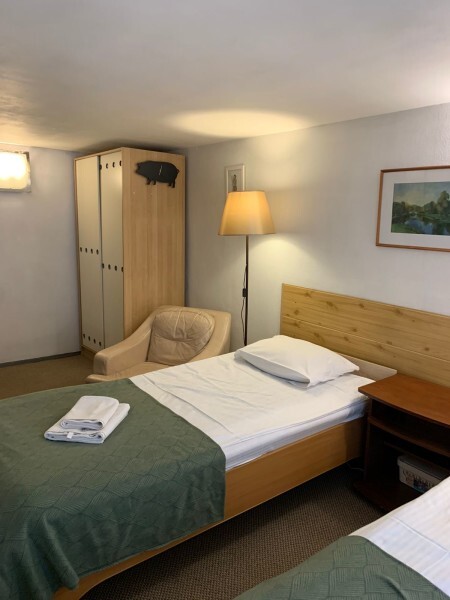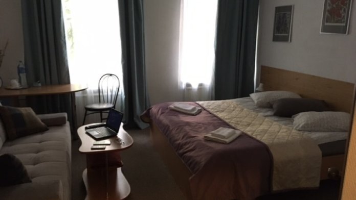 Ванная комната размещена вне номера, в нескольких шагах по коридору. В номере размещены 2 односпальные кровати, максимальная вместимость - 2 человека. Также, возможна конфигурация с одной двуспальной кроватью. Есть ЖК телевизор с кабельным телевидением, электрический чайник с чайными принадлежностями, мини френч-пресс, бокалы и чашки, фен, бесплатный высокоскоростной Wi-Fi, туалетно-косметические принадлежности, постельное белье, полотенца, предоставляются халаты.