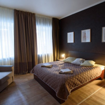 Идеально подойдет для проживания семьи с ребенком - большая двуспальная кровать king-size, широкое кресло-кровать, рабочий стол, вместительный раздвижной шкаф с зеркалом во весь рост, собственный холодильник. ЖК телевизор с кабельным телевидением, электрический чайник с чайными принадлежностями, мини френч-пресс, бокалы и чашки, фен, бесплатный высокоскоростной Wi-Fi, туалетно-косметические принадлежности, постельное белье на каждое спальное место и меню подушек, полотенца. Номер оборудован просторной и светлой ванной комнатой.