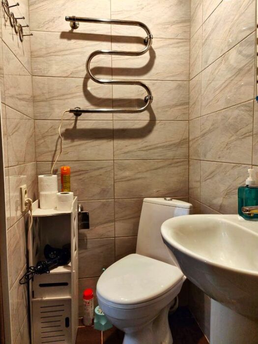 Санузел общий. В душевых есть гигиенические принадлежности и фен, полотенце.