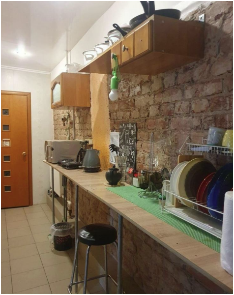 Помещение с отдельным входом на первом этаже. Есть бесплатная парковка во дворе. В душевых есть гигиенические принадлежности и фен, полотенце. Кухни оборудованы плитой, холодильником, микроволновкой, чайником и всей необходимой посудой. Для гостей всегда имеется чай и печеньки. Так же гости могут воспользоваться стиральной машиной, сушилкой, гладильной доской и утюгом.