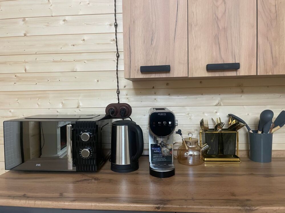 В домах имеется всё необходимое для комфортного отдыха: Wi-fi, кухня с холодильником, микроволновая печь, чайник, посуда. Санузел с душевой кабиной, фен, полотенца, постельное белье.