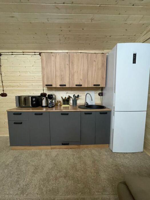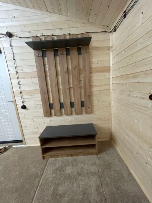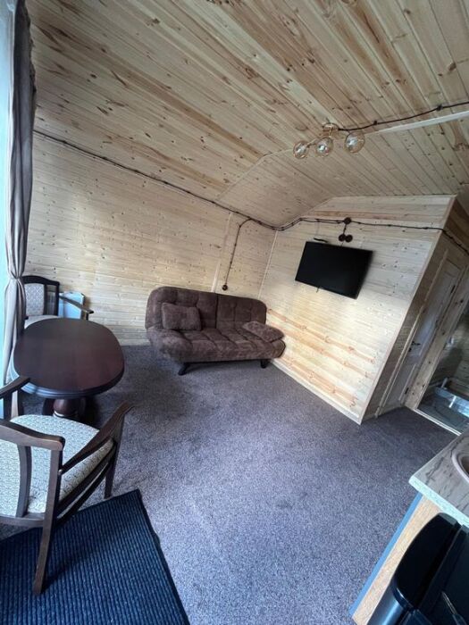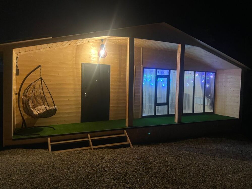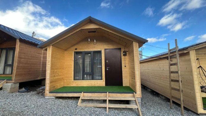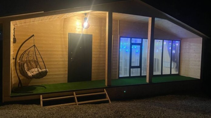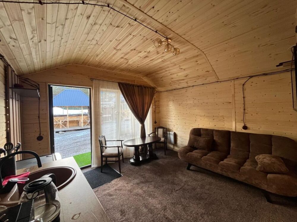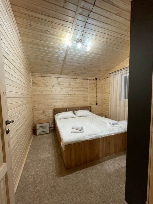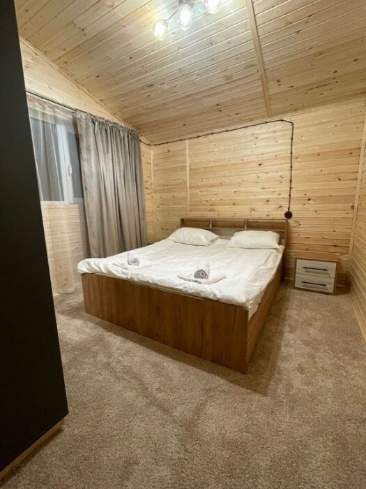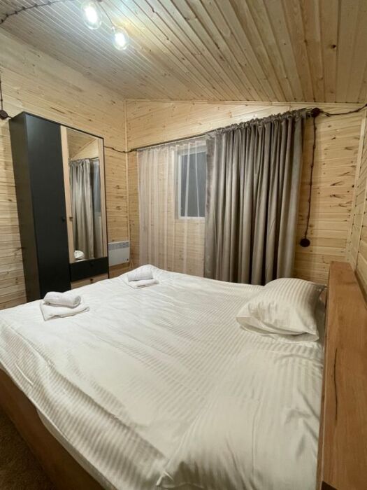 Вместимость 2 домика до 4 человек (2-спальная кровать и раскладной диван).
