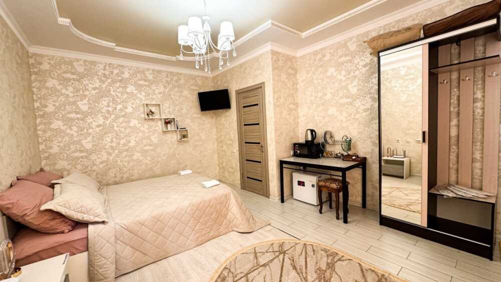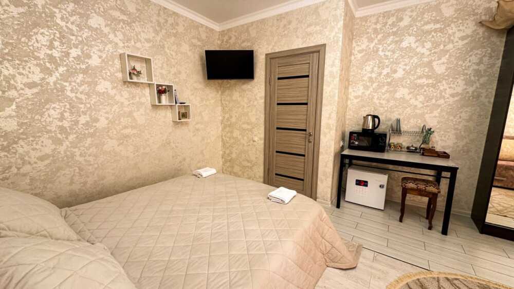 Жильё «Мёлек» предоставляет гостям уютные комнаты, оснащённые всем необходимым: Wi-Fi, системой отопления, звукоизоляцией. В комнате есть телевизор, фен, тапочки, а также кухонные принадлежности.