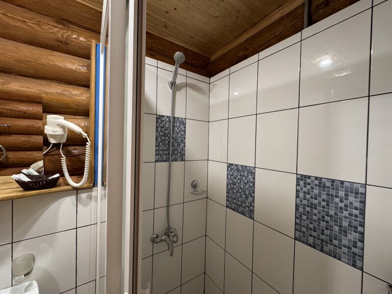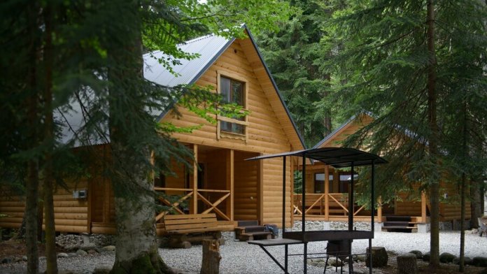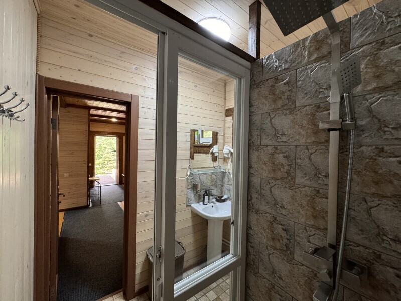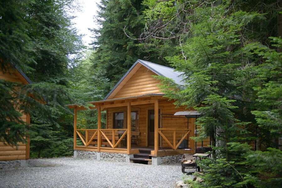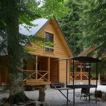 10 деревянных домиков со всеми удобствами: санузел, телевизор, холодильник, чайник, микроволновка, фен. Полы с подогревом в санузлах.. Террасы с уличной мебелью и мангал у каждого шале.