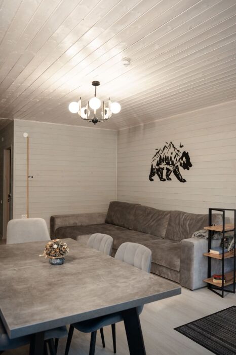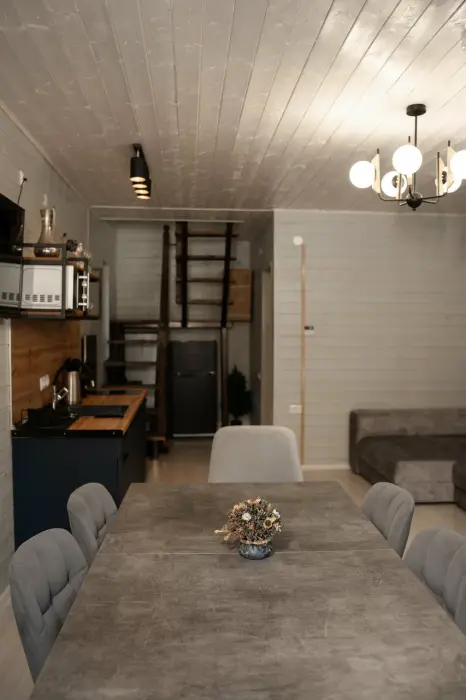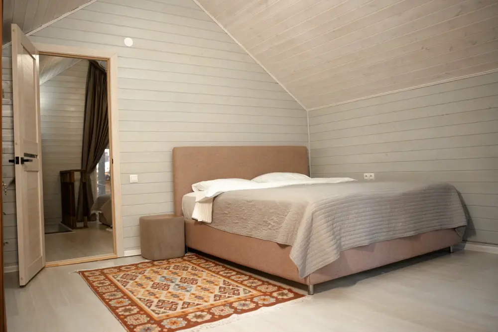 В двухэтажном барнхаусе на 6 человек есть всё необходимое для комфортного проживания: