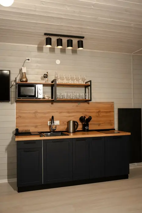 - полностью оборудованная кухня (вся посуда, кухонный инвентарь, микроволновка, чайник);