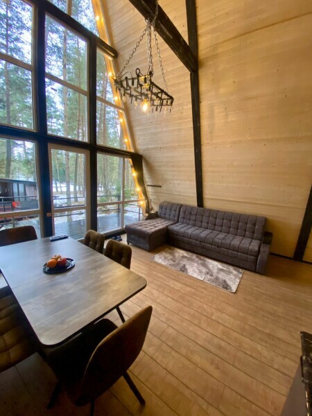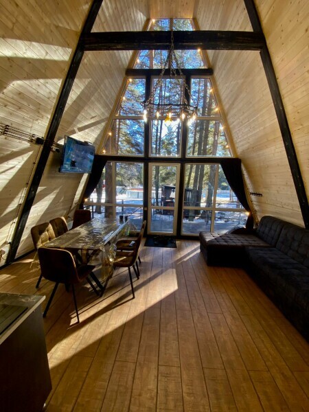 Современные A-Frame домики созданы для Вашего комфортного проживания. Каждый домик рассчитан на размещение до 5 человек и оборудован всеми необходимыми удобствами. Здесь Вы найдете всё для полноценного отдыха: удобную мебель, современную технику и уютную атмосферу.