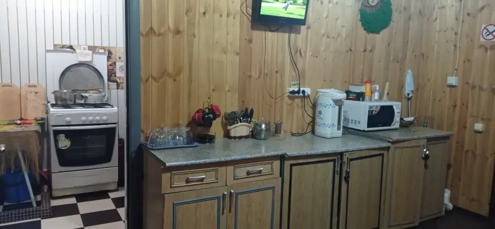 В распоряжении гостей удобная кухня, со всеми необходимыми принадлежностями и мангальная зона, уютные номера разной вместимости.