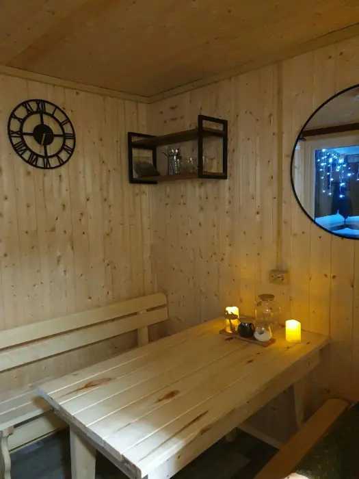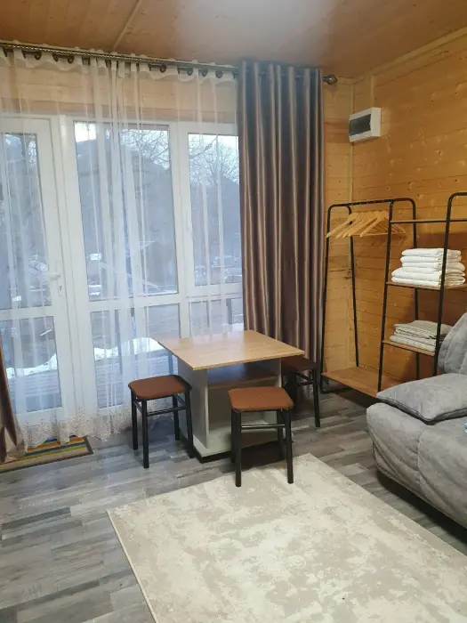 На территории есть беседка и мангал, установлены москитные сетки. Любители зимних видов спорта могут воспользоваться прокатом лыжного снаряжения. Имеется место для хранения лыж/сноубордов. Парковка бесплатная. В холодное время года в жилье тепло благодаря центральному отоплению.