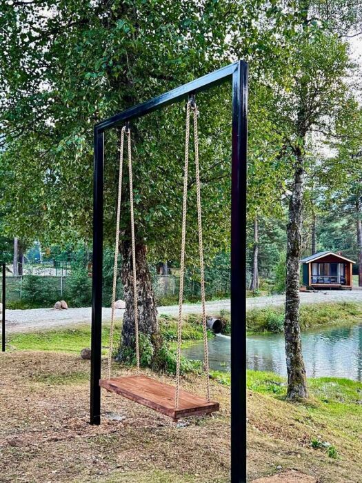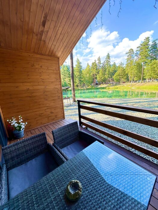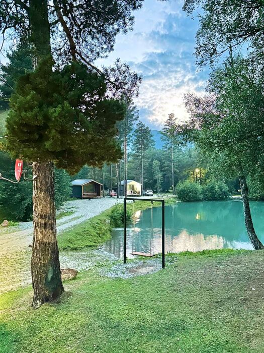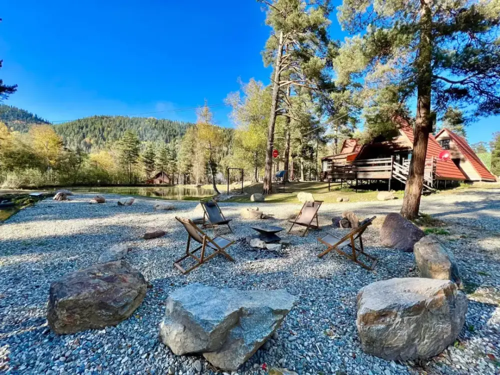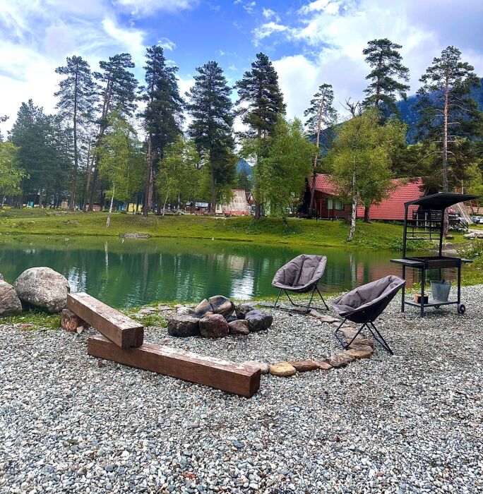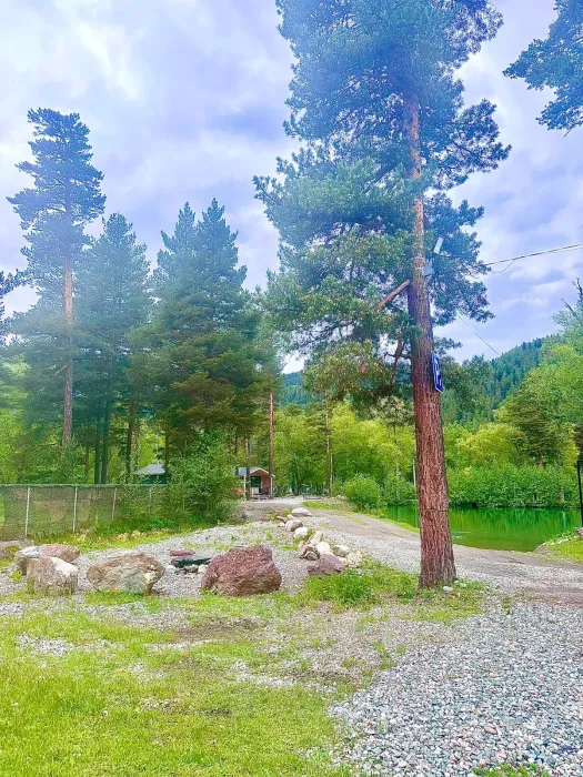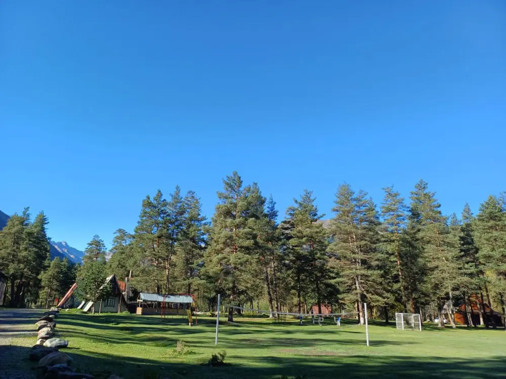 На огромной территории базы: красивое, знаменитое в Архызе озеро Таулу, футбольное поле, баскетбольная площадка, игровая площадка, магазин, зона стирки, доставка завтраков в домик по желанию, свой генератор для бесперебойной подачи электроэнергии, а также скважина с чистейшей горной водой.