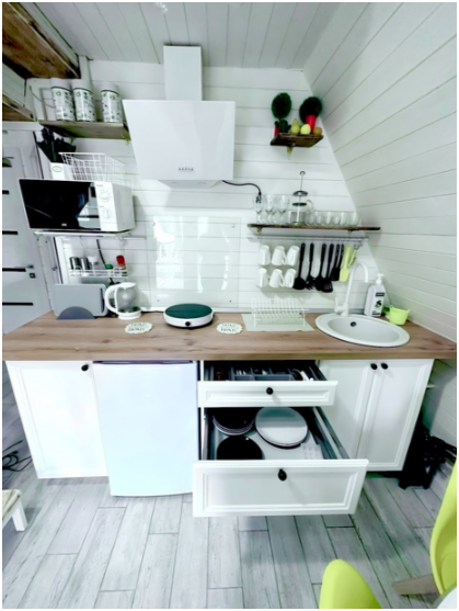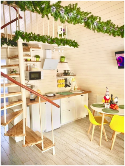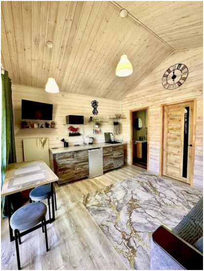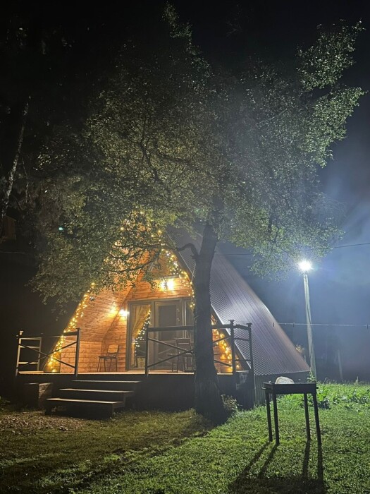 Домики оборудованы всей необходимой техникой и принадлежностями. У каждого домика своя мангальная и костровая зоны для уединенного отдыха, рядом с домиками бесплатная парковка для гостей на автомобилях. Пледы, котелки, мангалы, принадлежности для барбекю выдаем бесплатно. В каждом домике свой WI-FI.