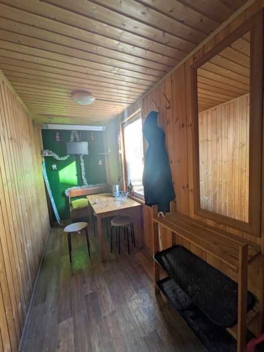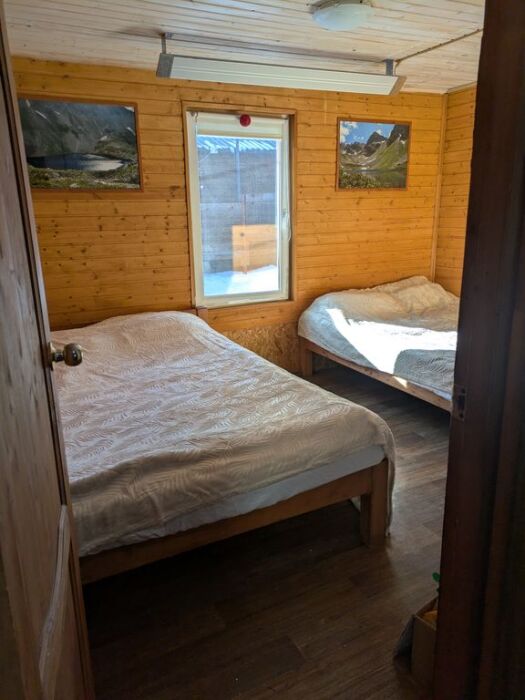 Второй домик вмещает 8 человек, в нем расположены 2 комнаты, в каждой из которых по две двуспальные кровати.