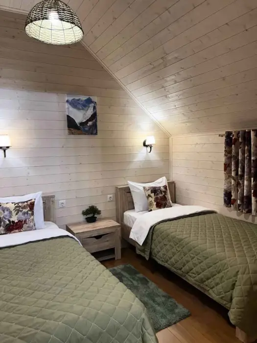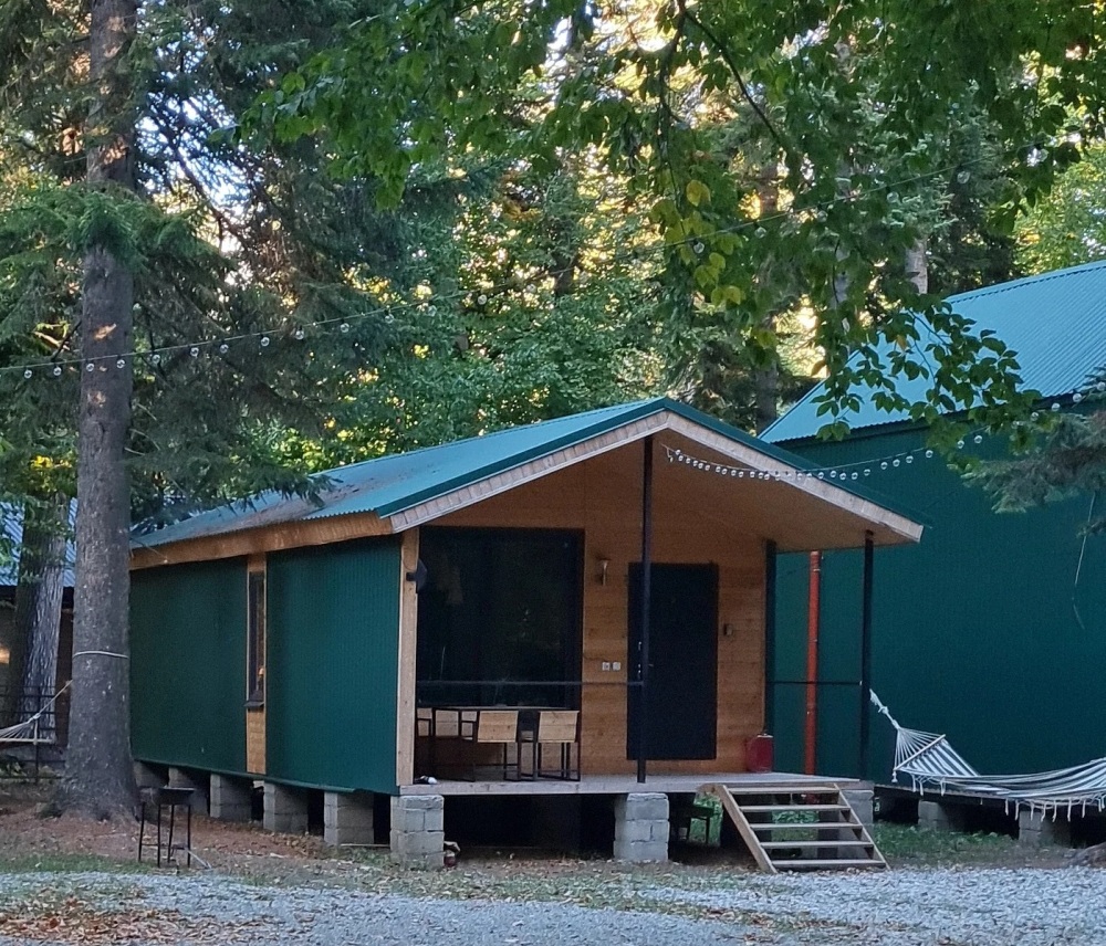 База отдыха расположена в селе Архыз, среди гор Северного Кавказа. Подходит для спокойного отдыха и размещения в природном окружении.