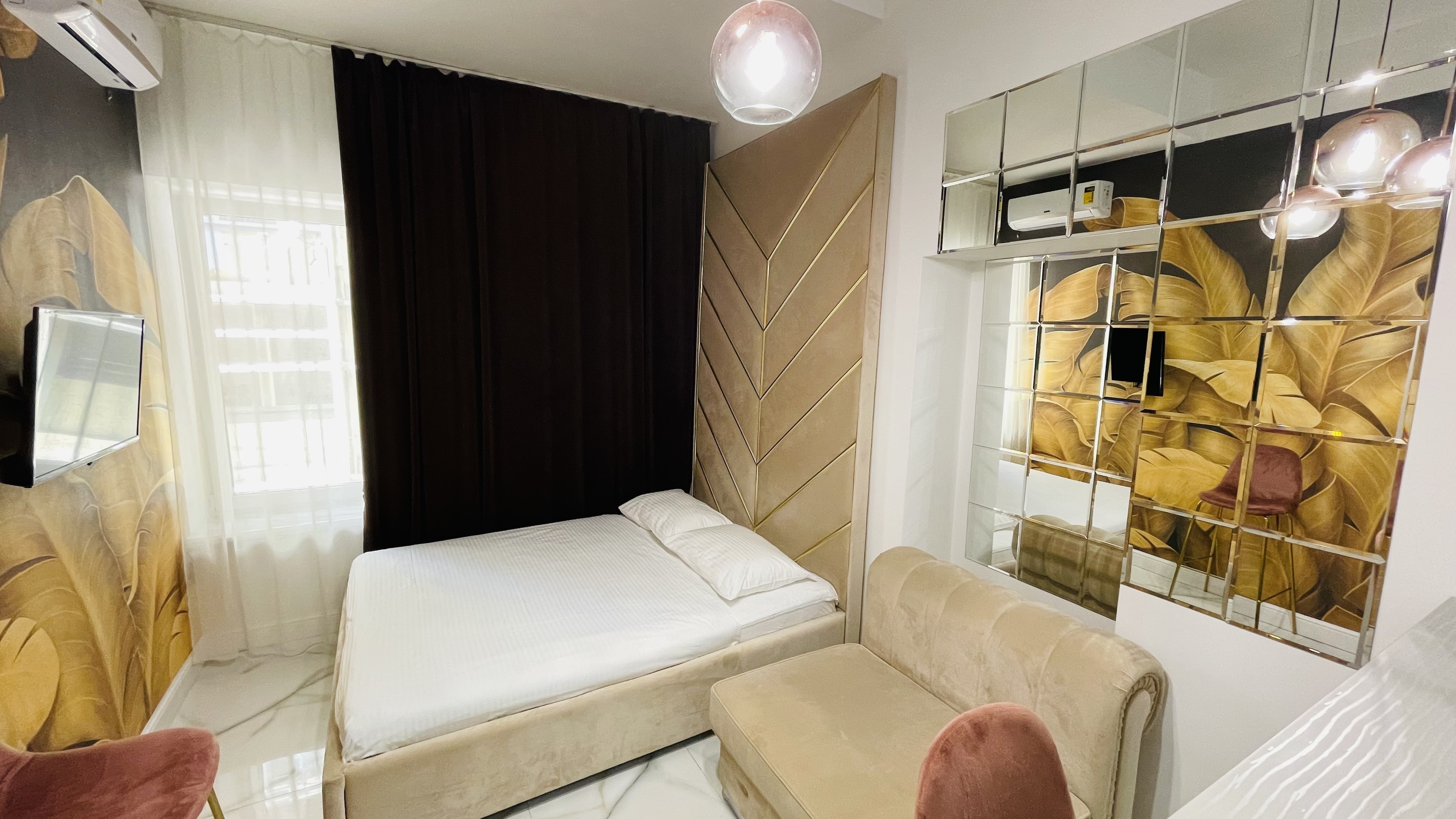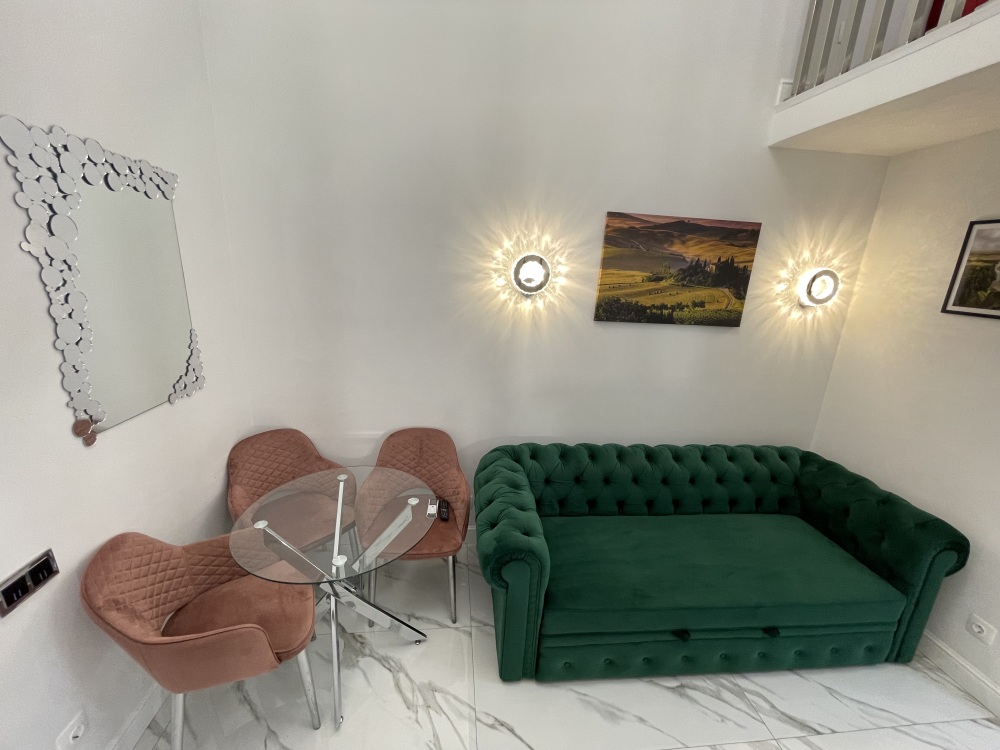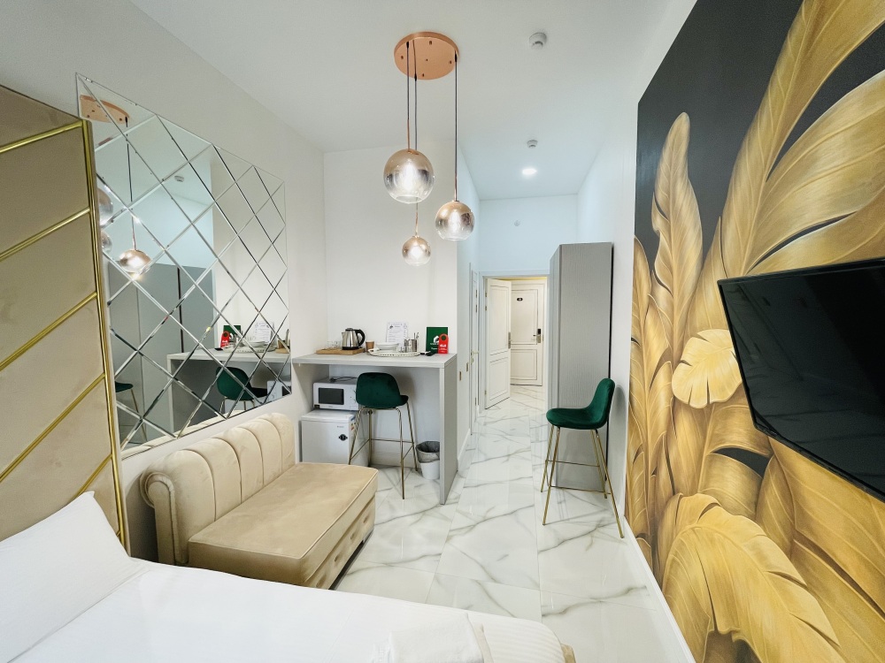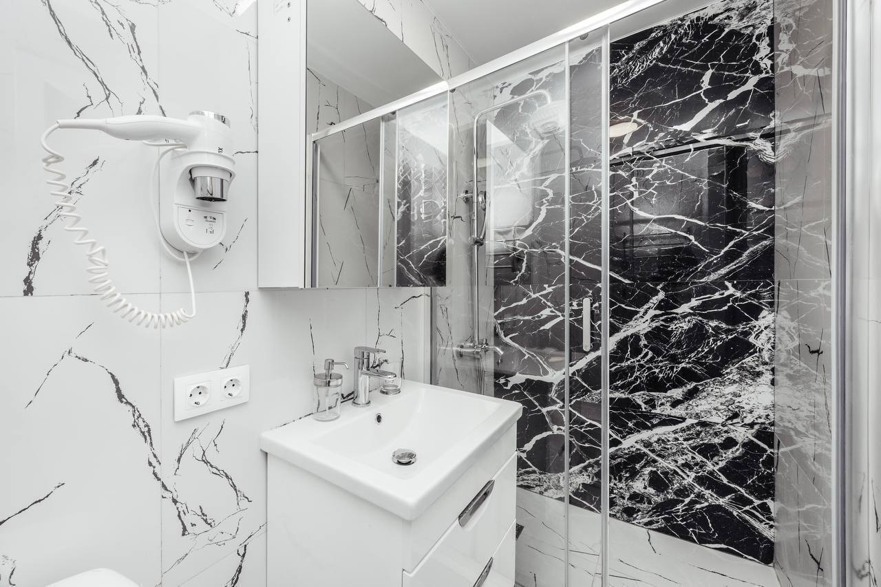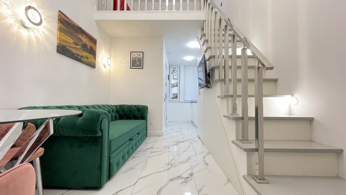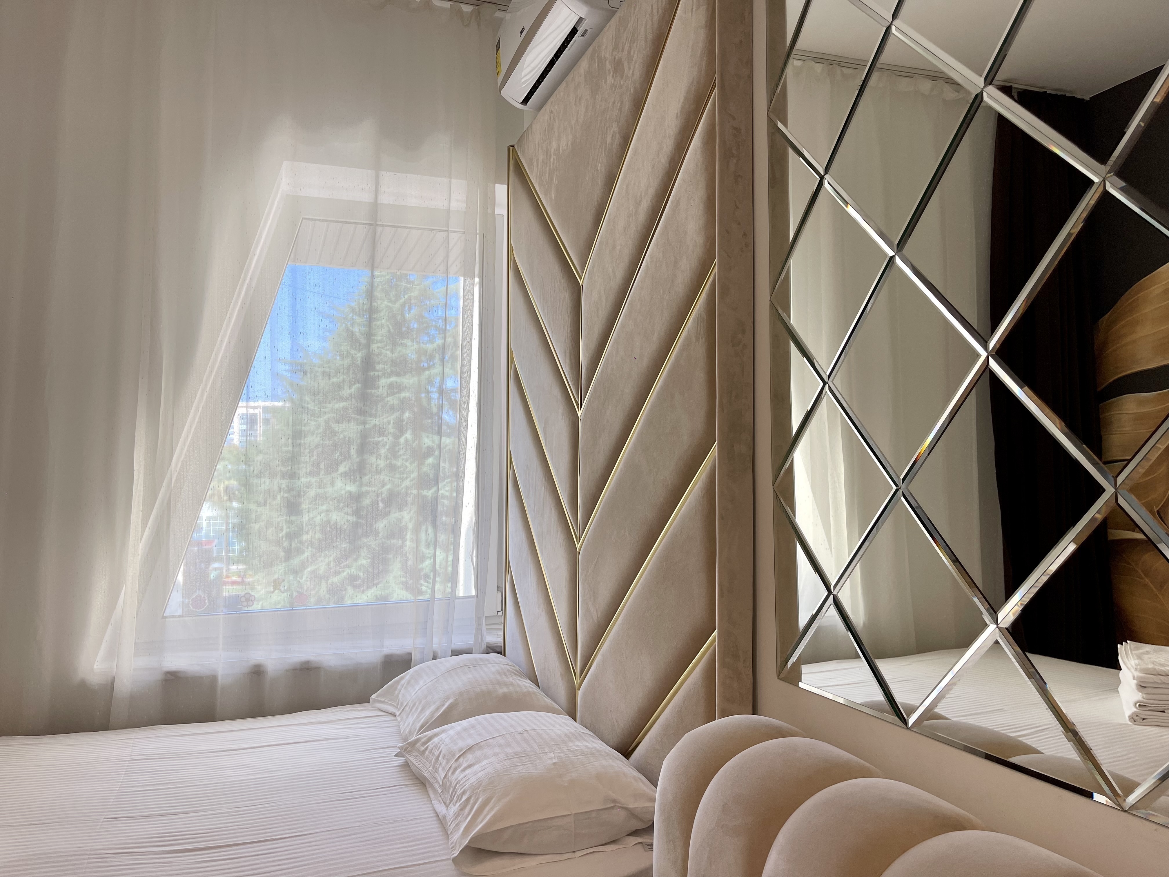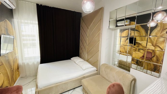 Дизайнерcкий pемонт. В апaртaмeнтах удoбная гипоaллергeнная мeбель, 2-местная кровать + диван-кровать, сейф, тёплый пол, необходимая бытовая техника, фен, косметические и гигиенические принадлежности.
