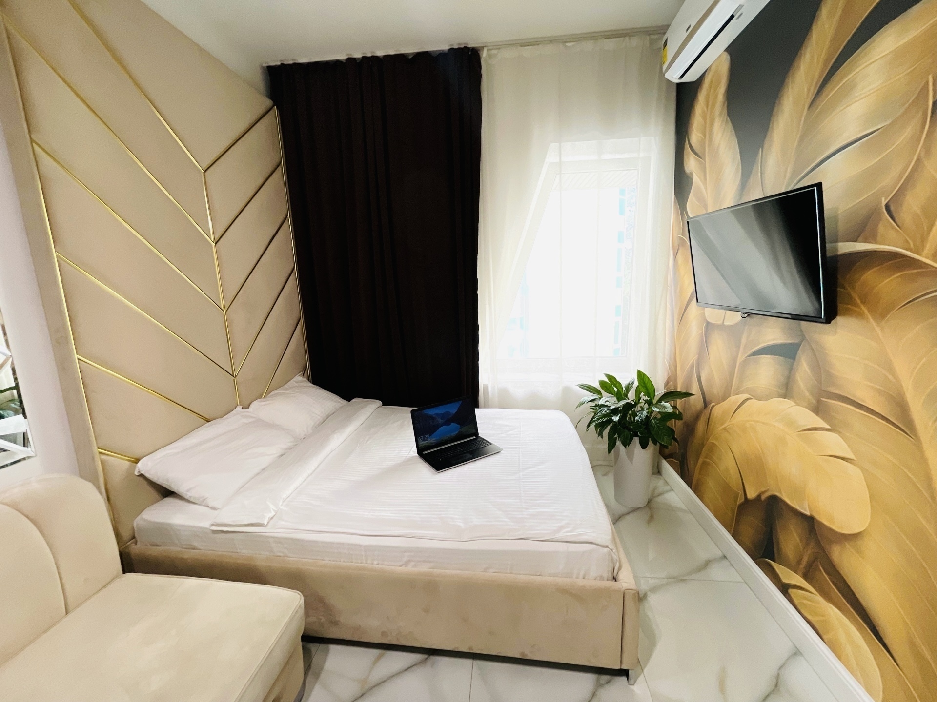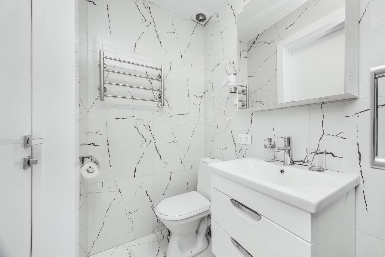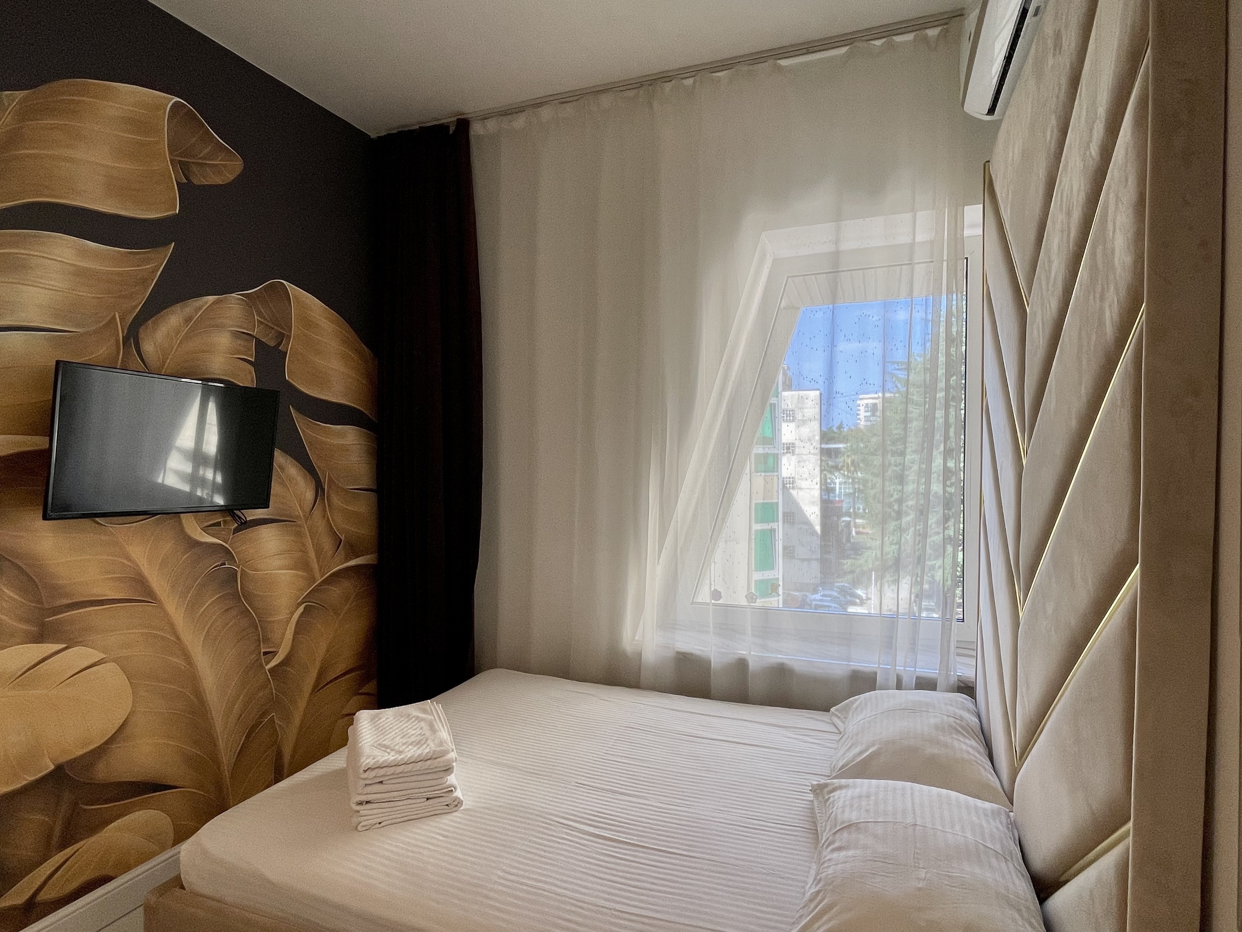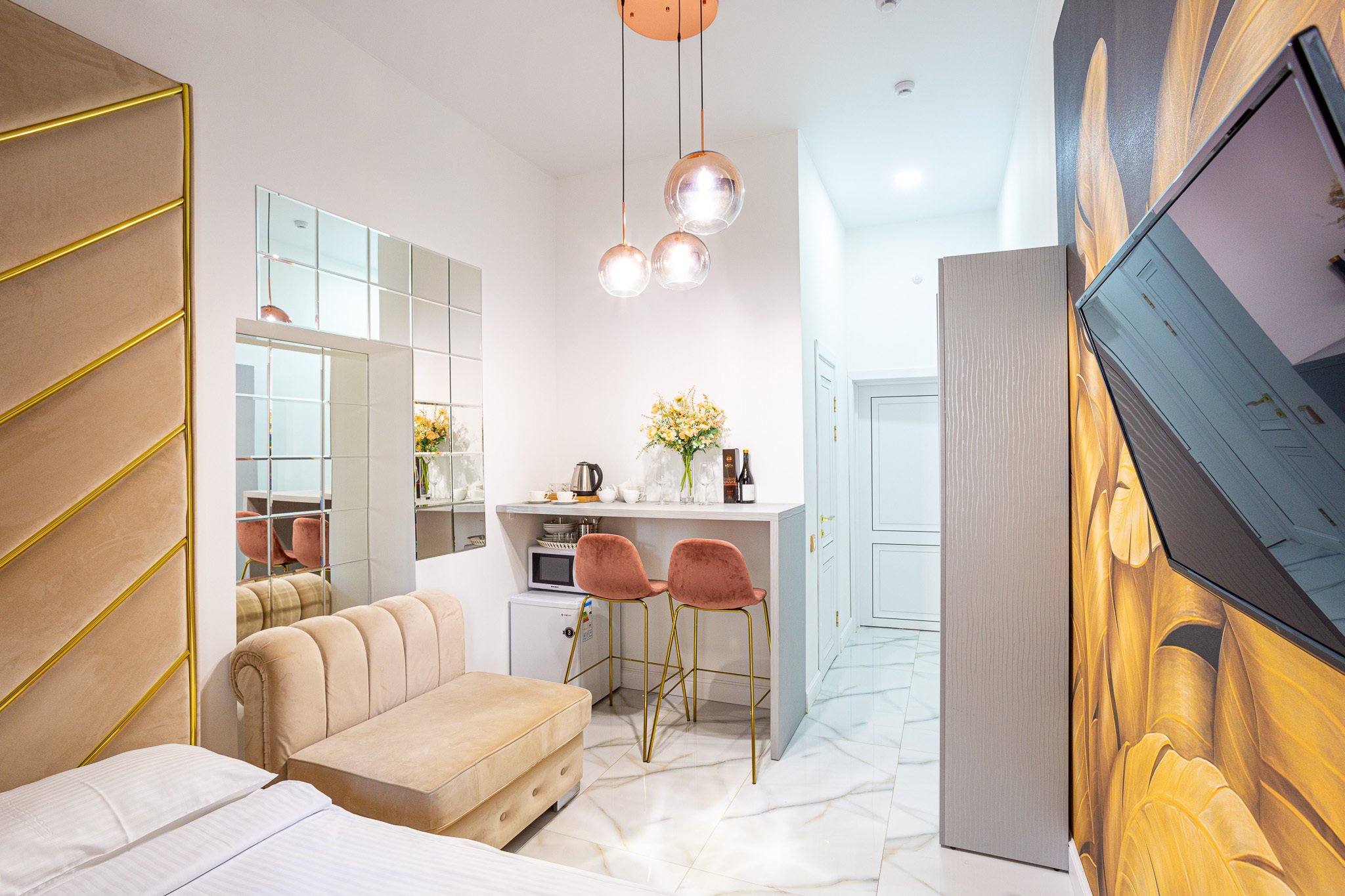 Дизайнерcкий pемонт. В апaртaмeнтах удoбная гипоaллергeнная мeбель, 2-местная кровать + диван-кровать, сейф, тёплый пол, необходимая бытовая техника, фен, косметические и гигиенические принадлежности.