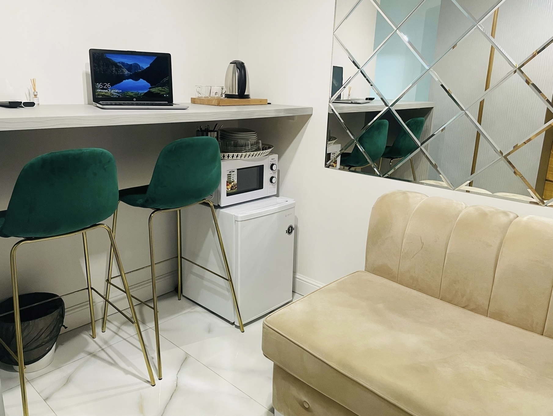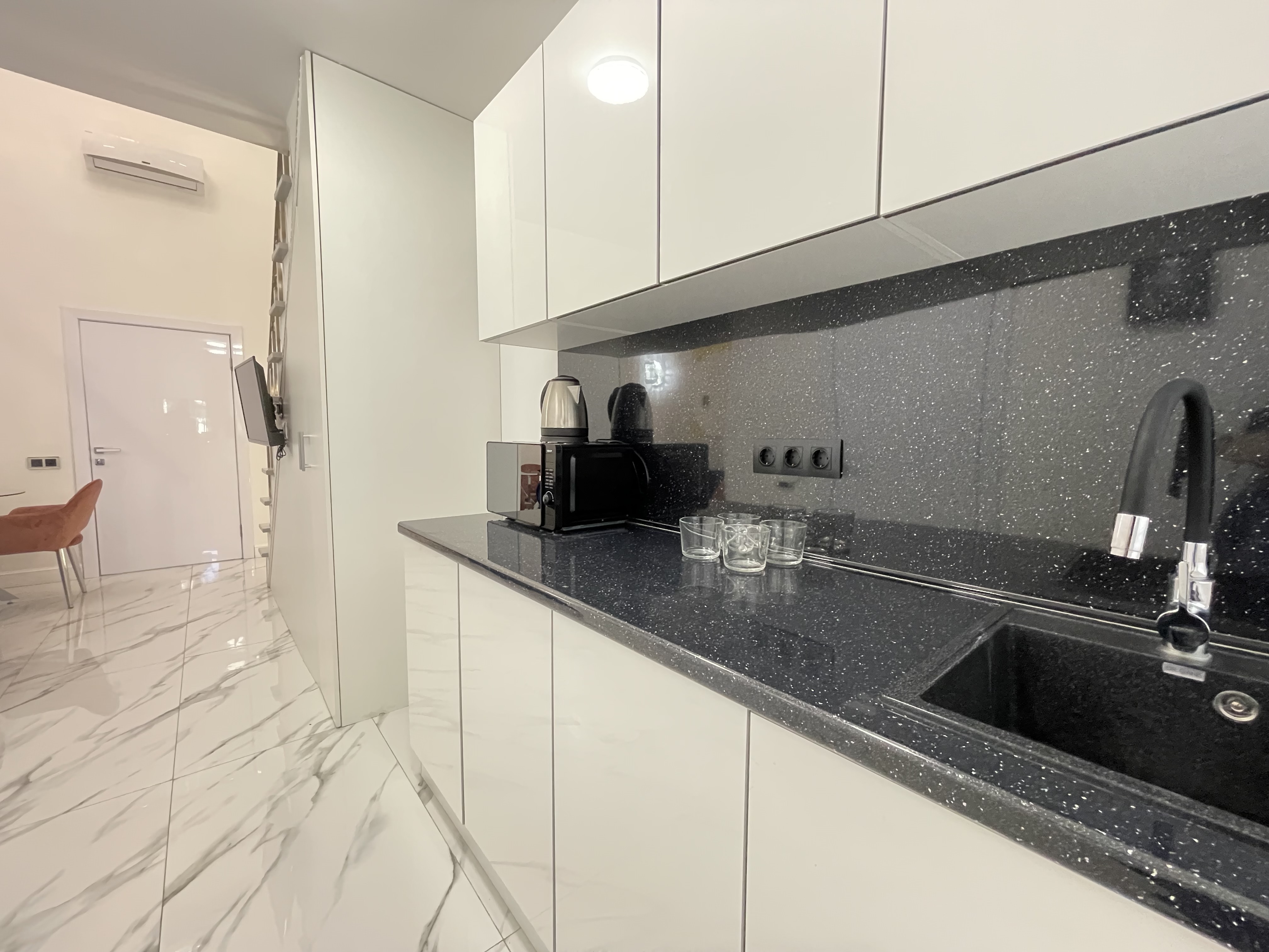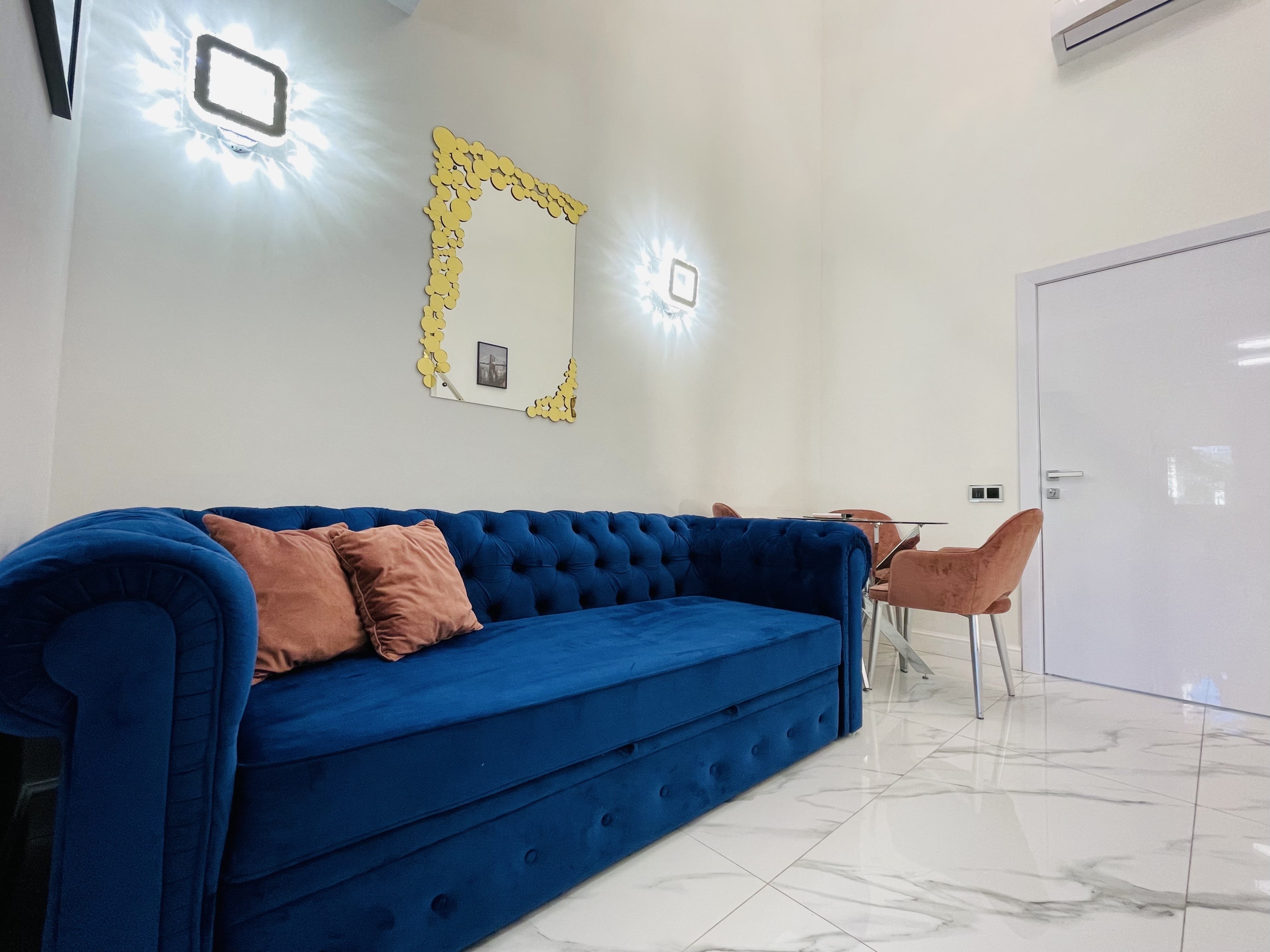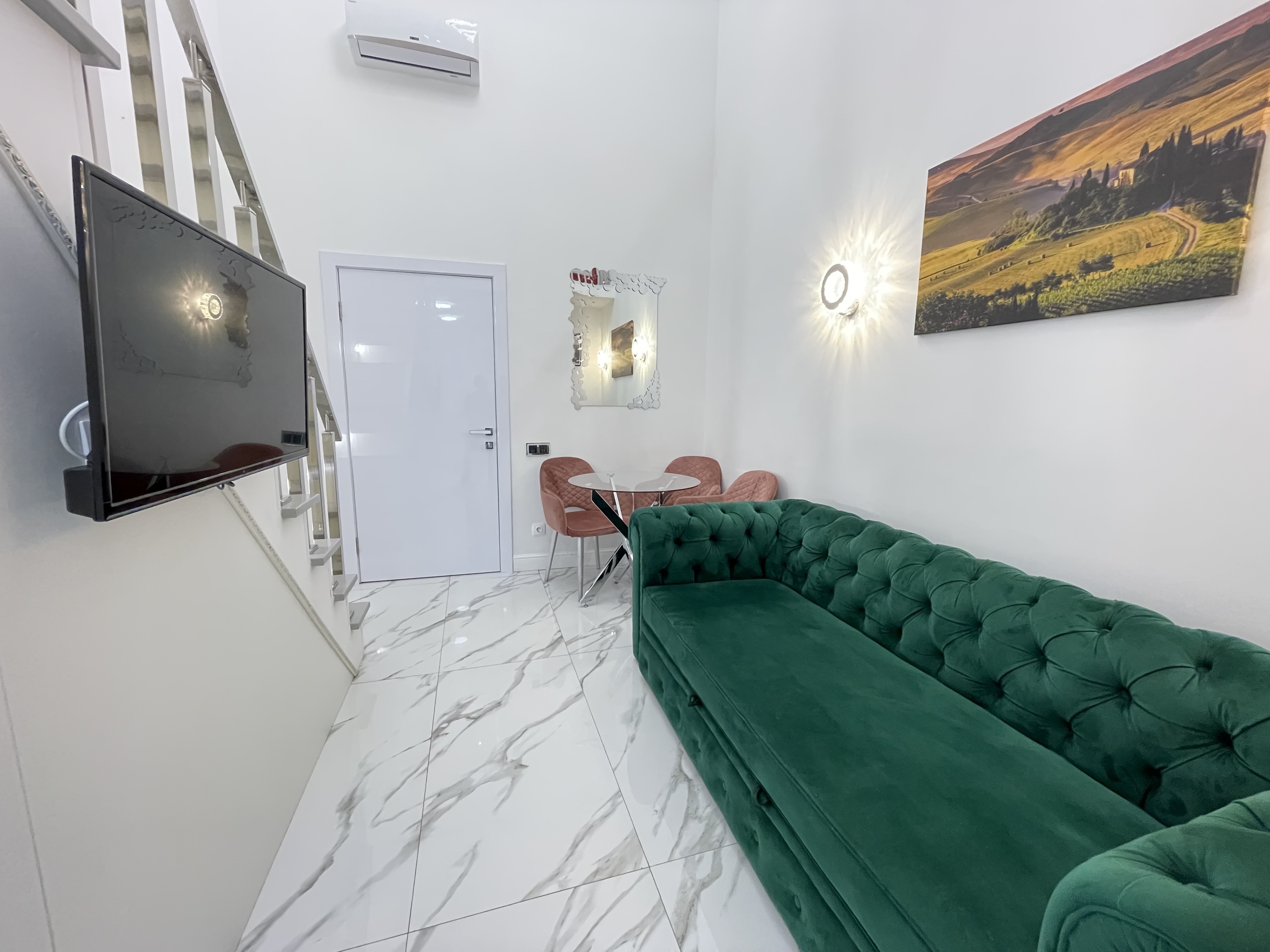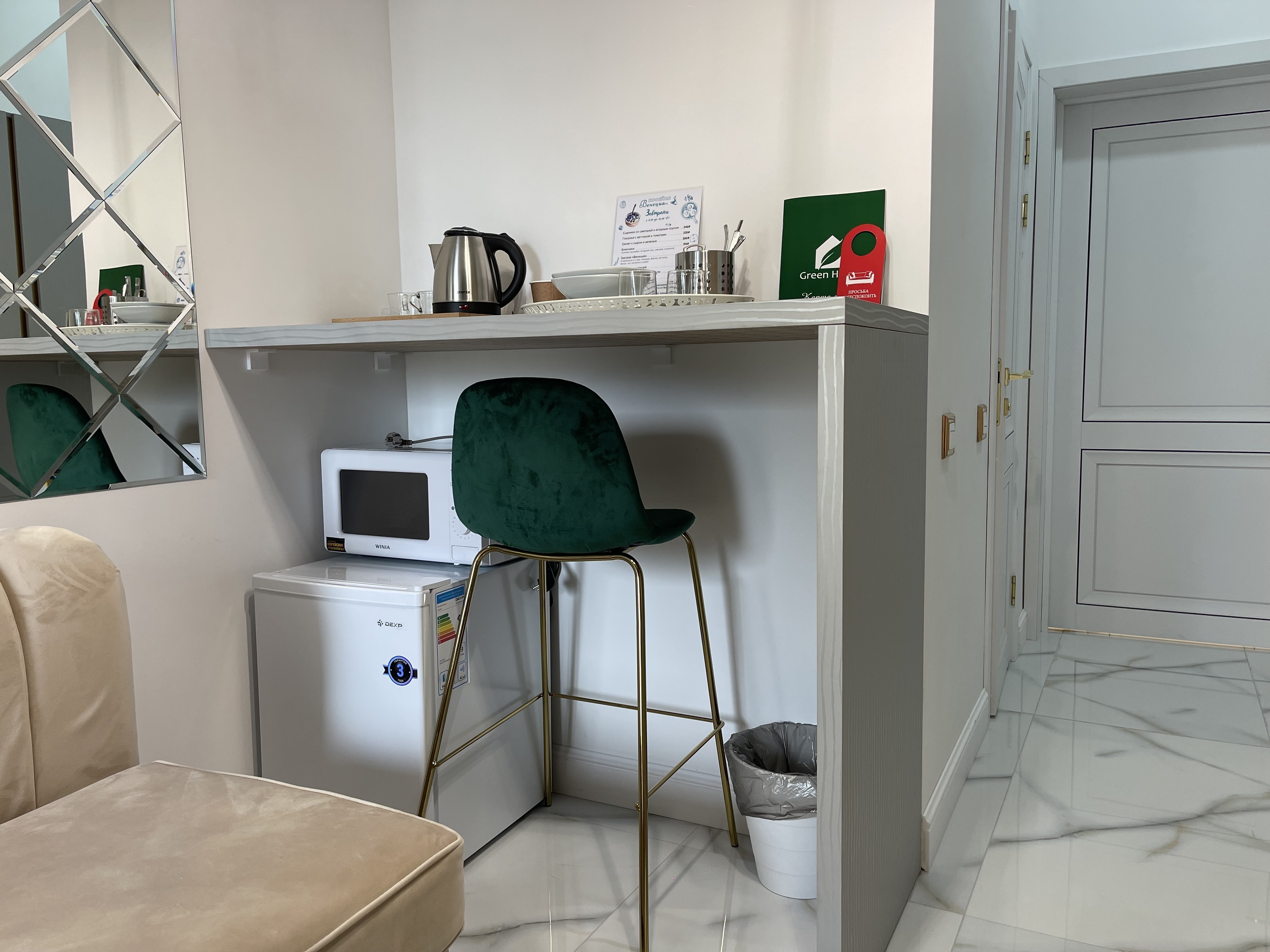 Дизайнерcкий pемонт. В апaртaмeнтах удoбная гипоaллергeнная мeбель, 2-местная кровать + диван-кровать, сейф, тёплый пол, необходимая бытовая техника, фен, косметические и гигиенические принадлежности.