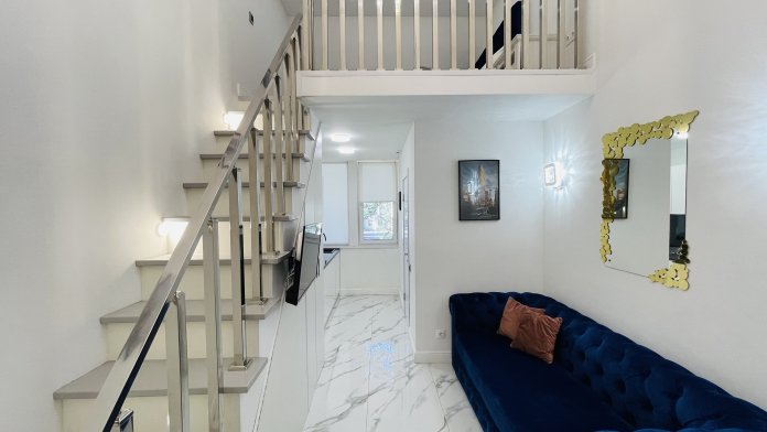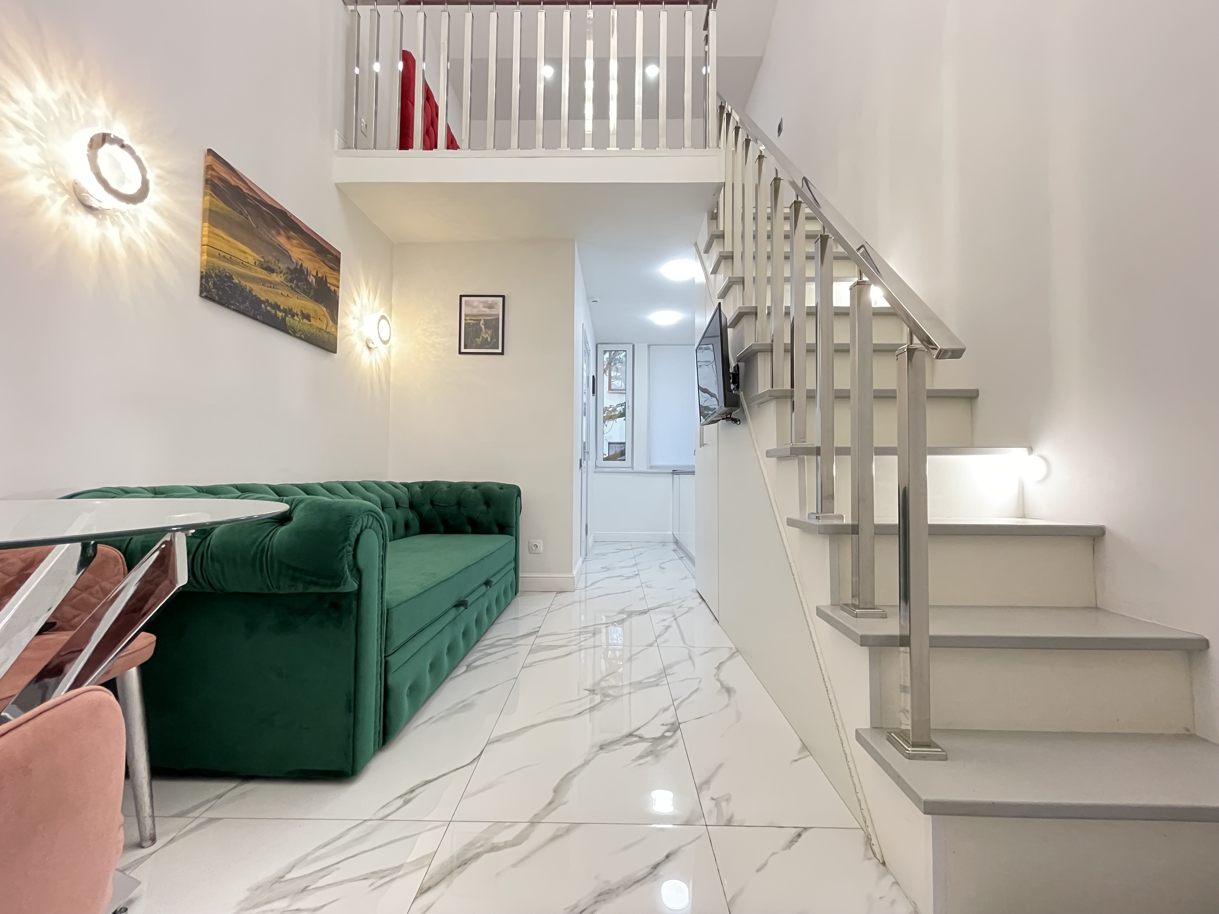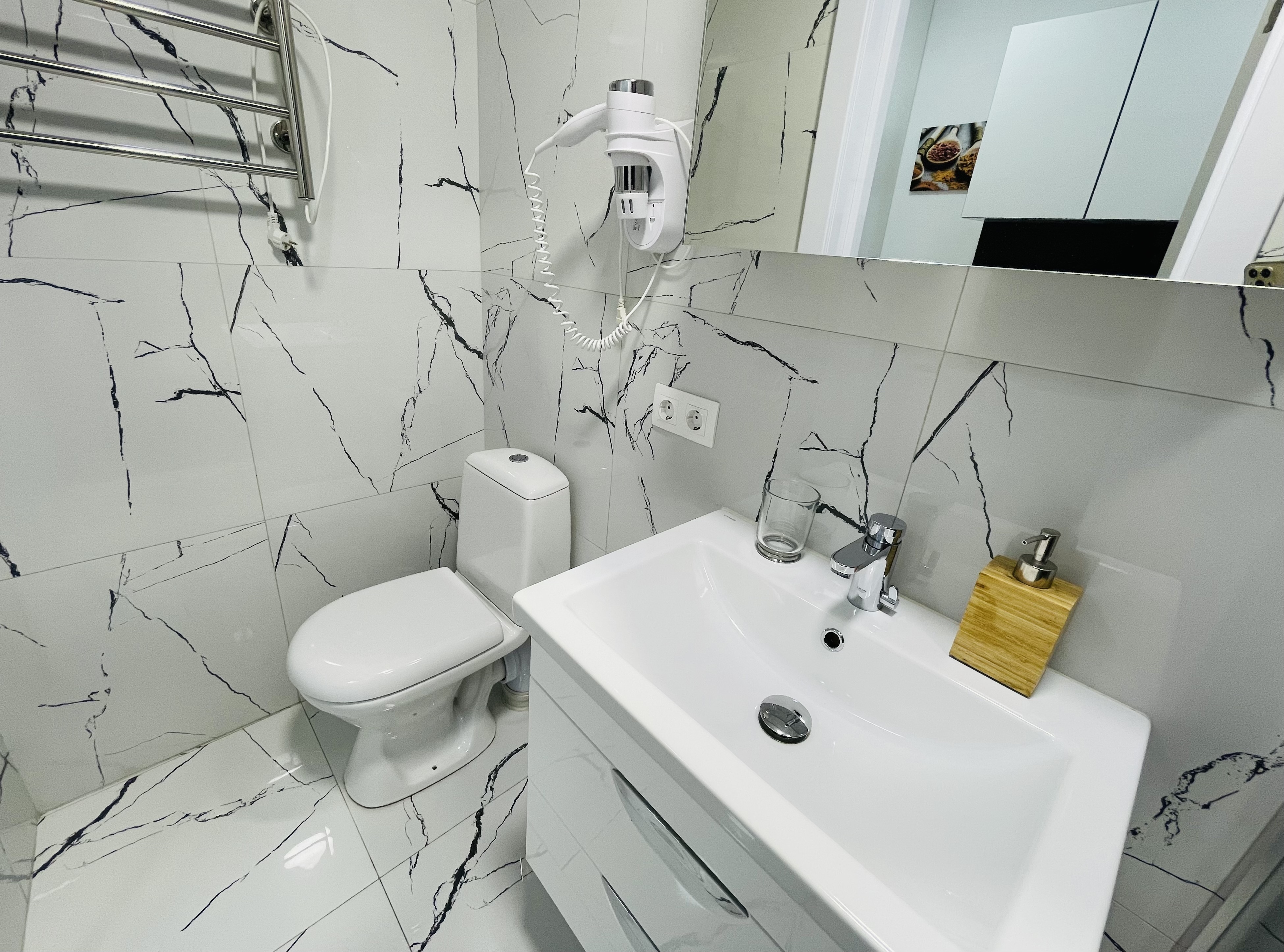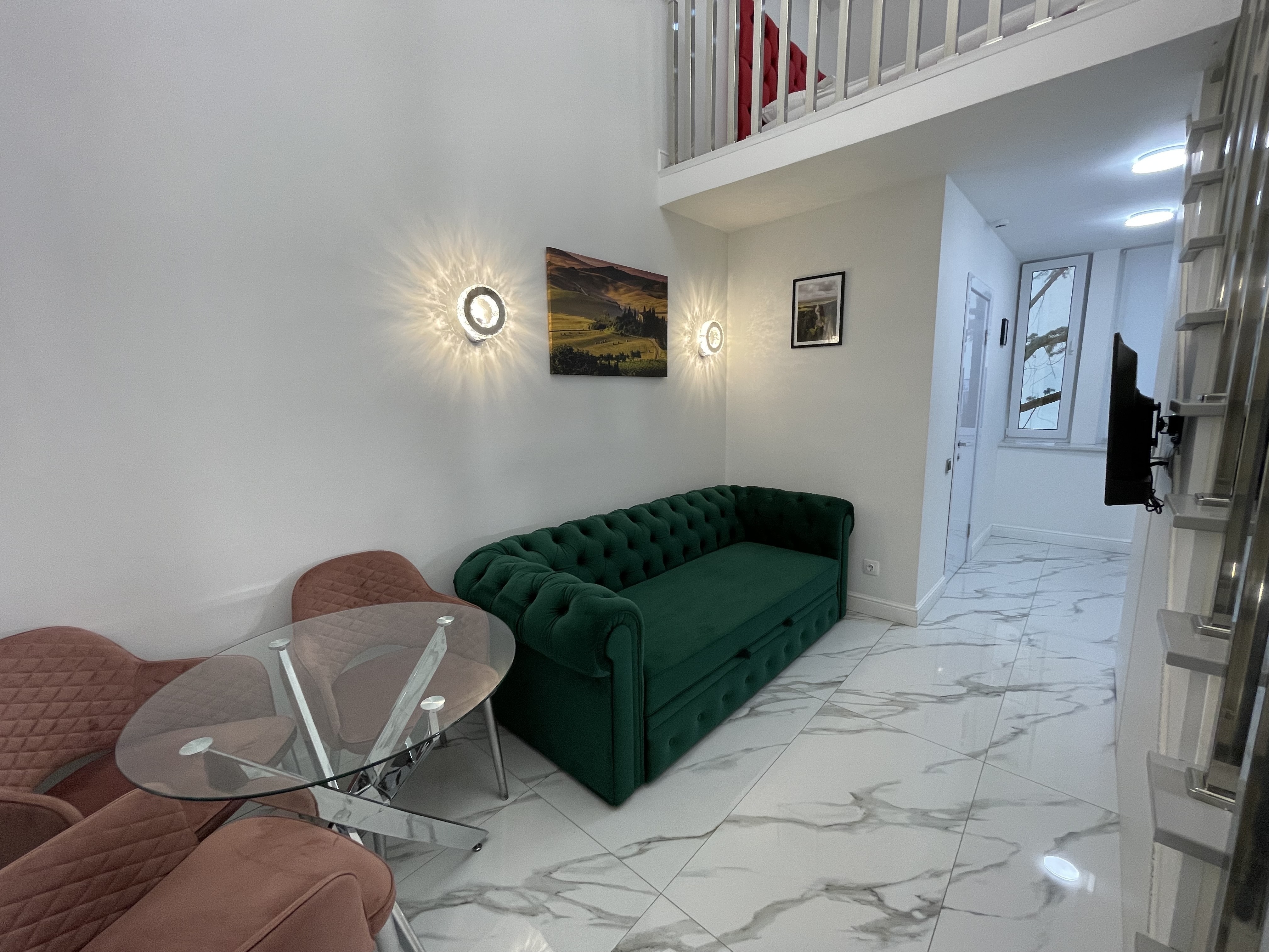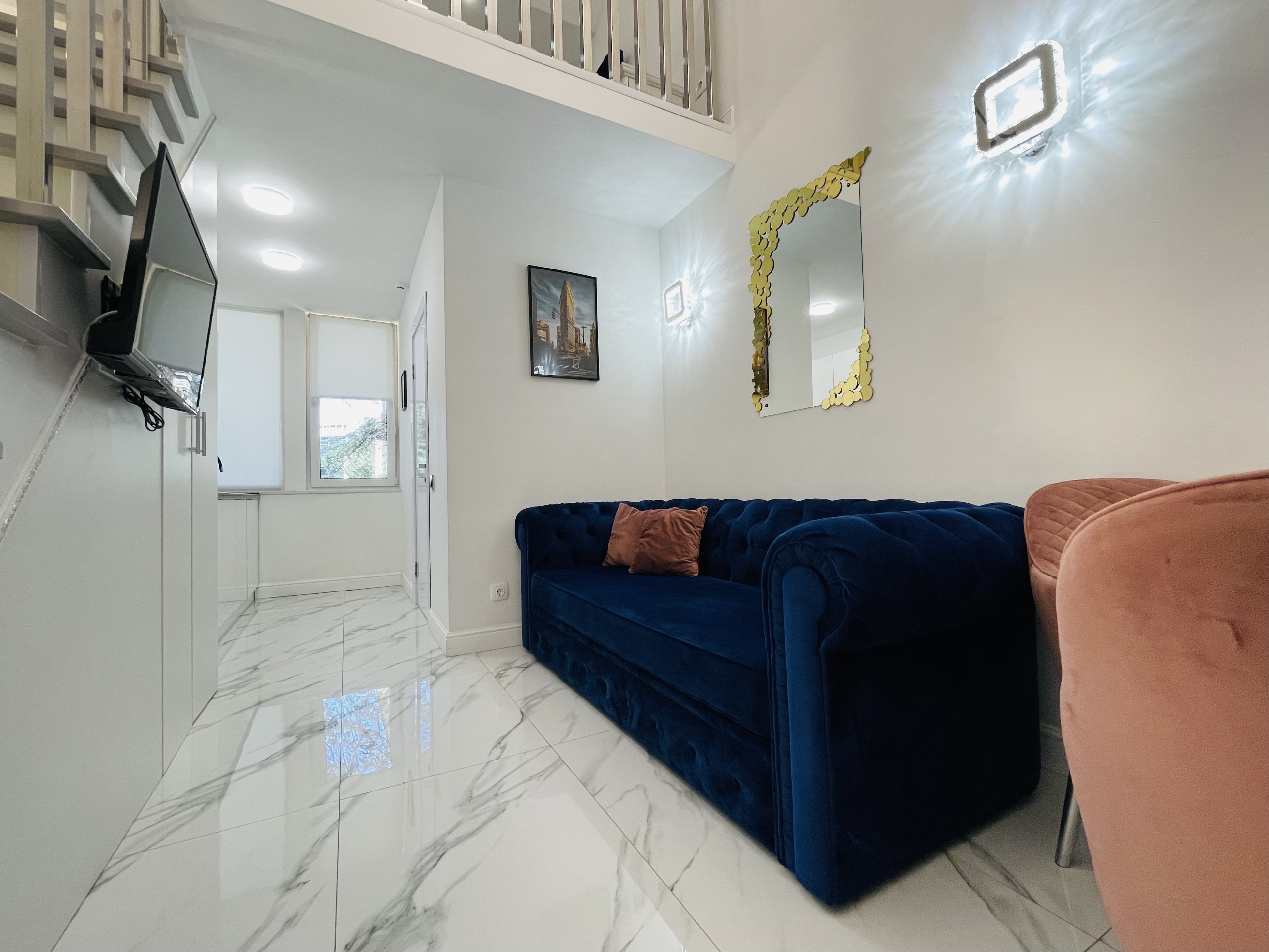 Дизайнерcкий pемонт. В апaртaмeнтах удoбная гипоaллергeнная мeбель, 2-местная кровать + диван-кровать, сейф, тёплый пол, необходимая бытовая техника, фен, косметические и гигиенические принадлежности.