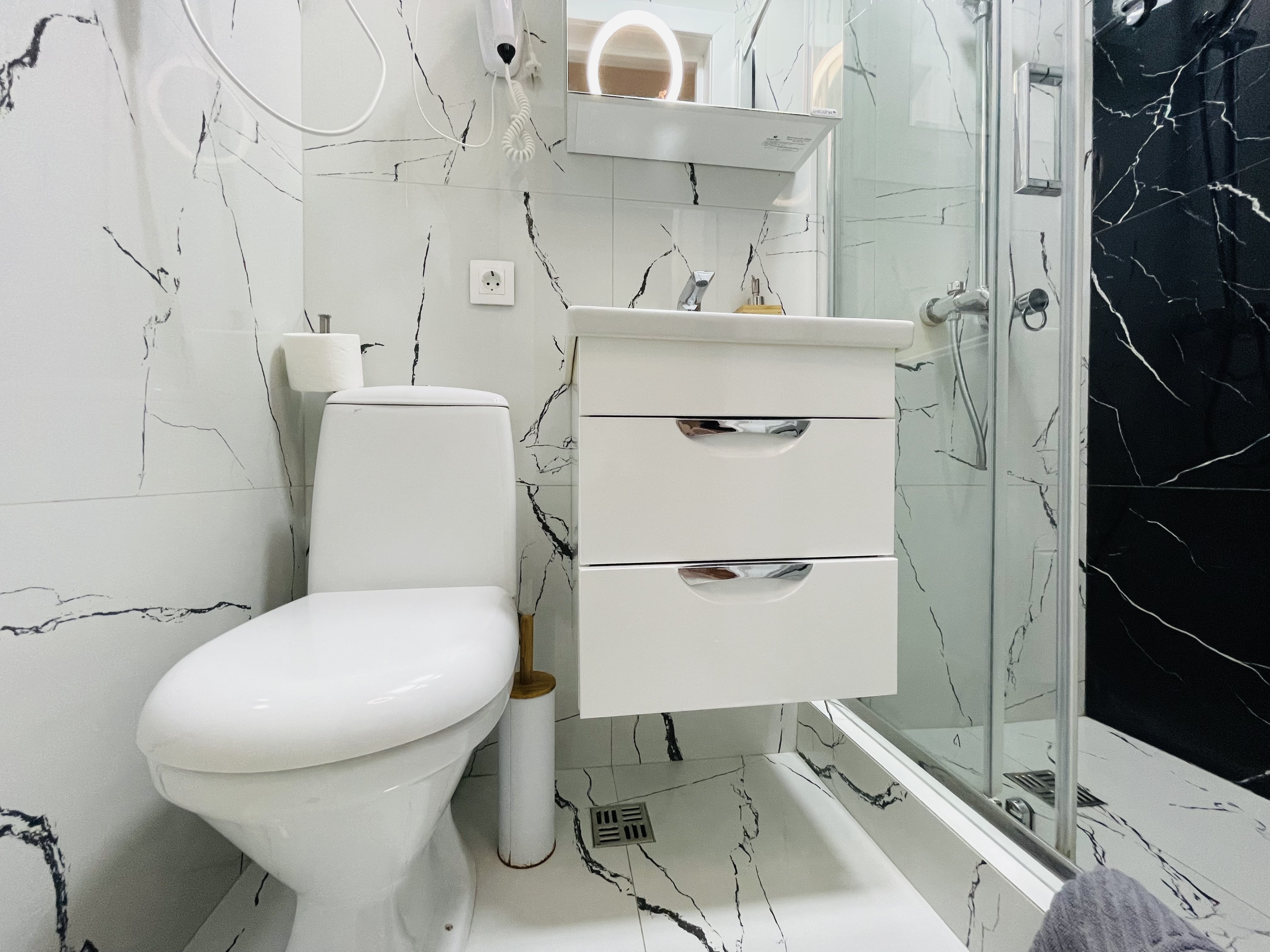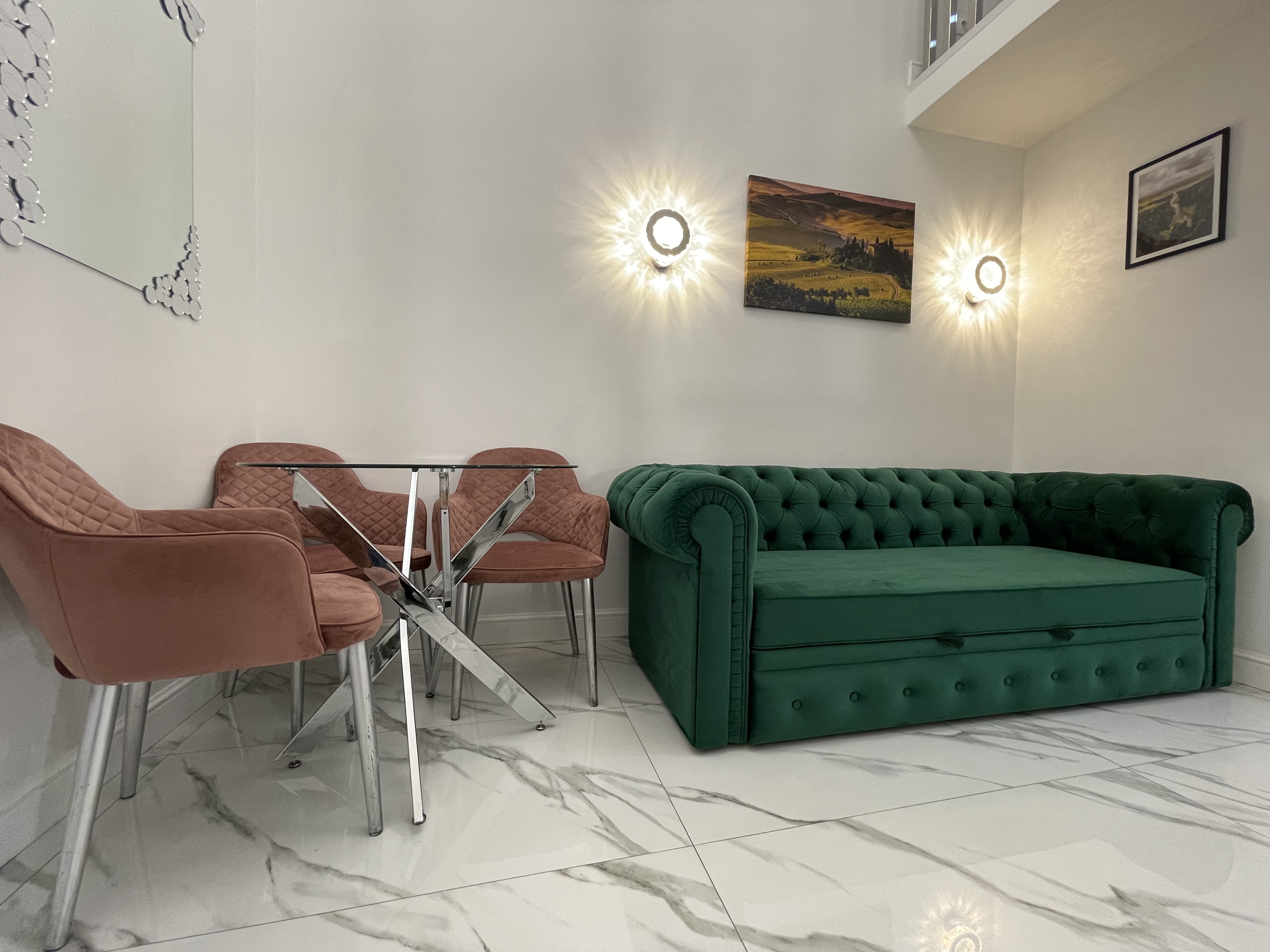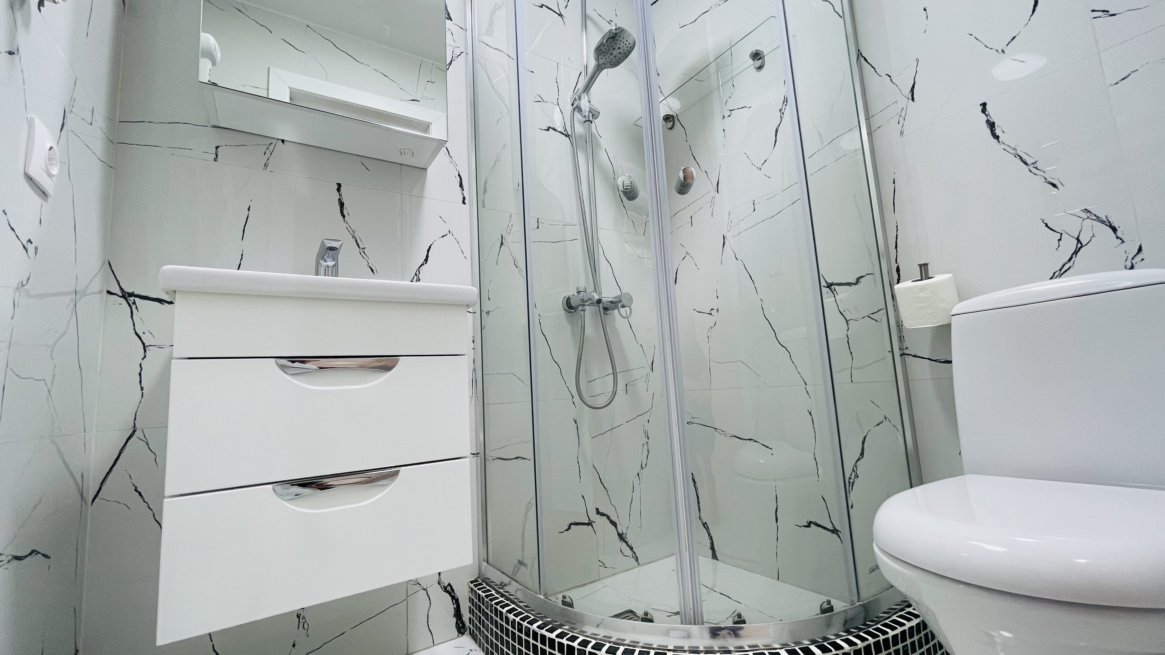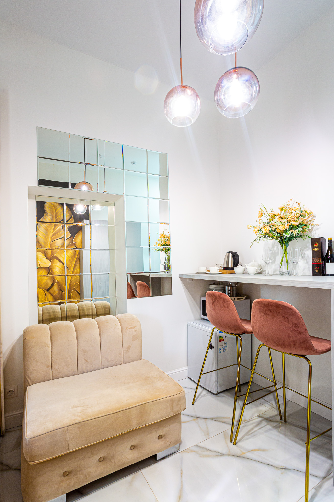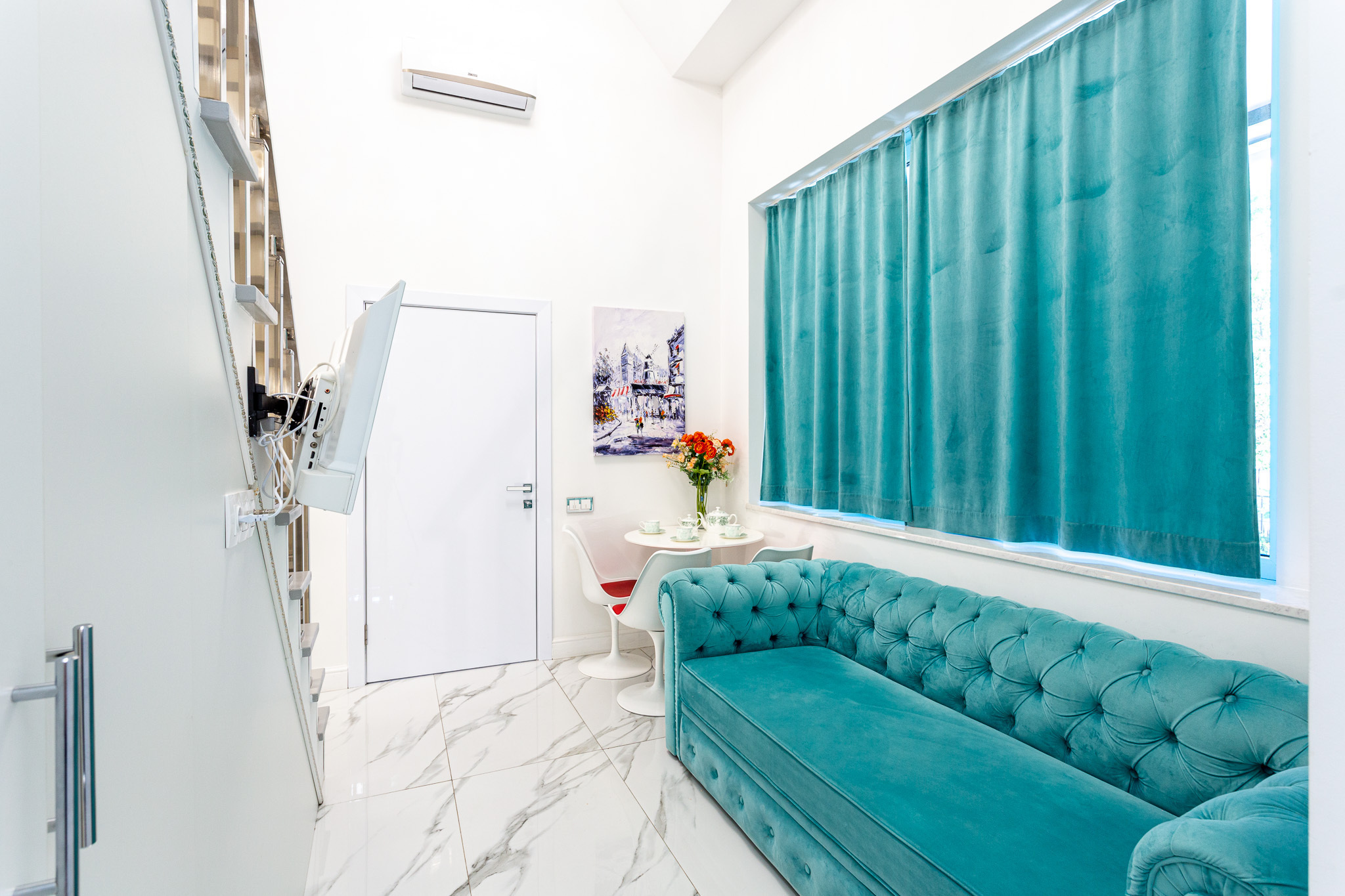 Дизайнерcкий pемонт. В апaртaмeнтах удoбная гипоaллергeнная мeбель, 2-местная кровать + диван-кровать, сейф, тёплый пол, необходимая бытовая техника, фен, косметические и гигиенические принадлежности.