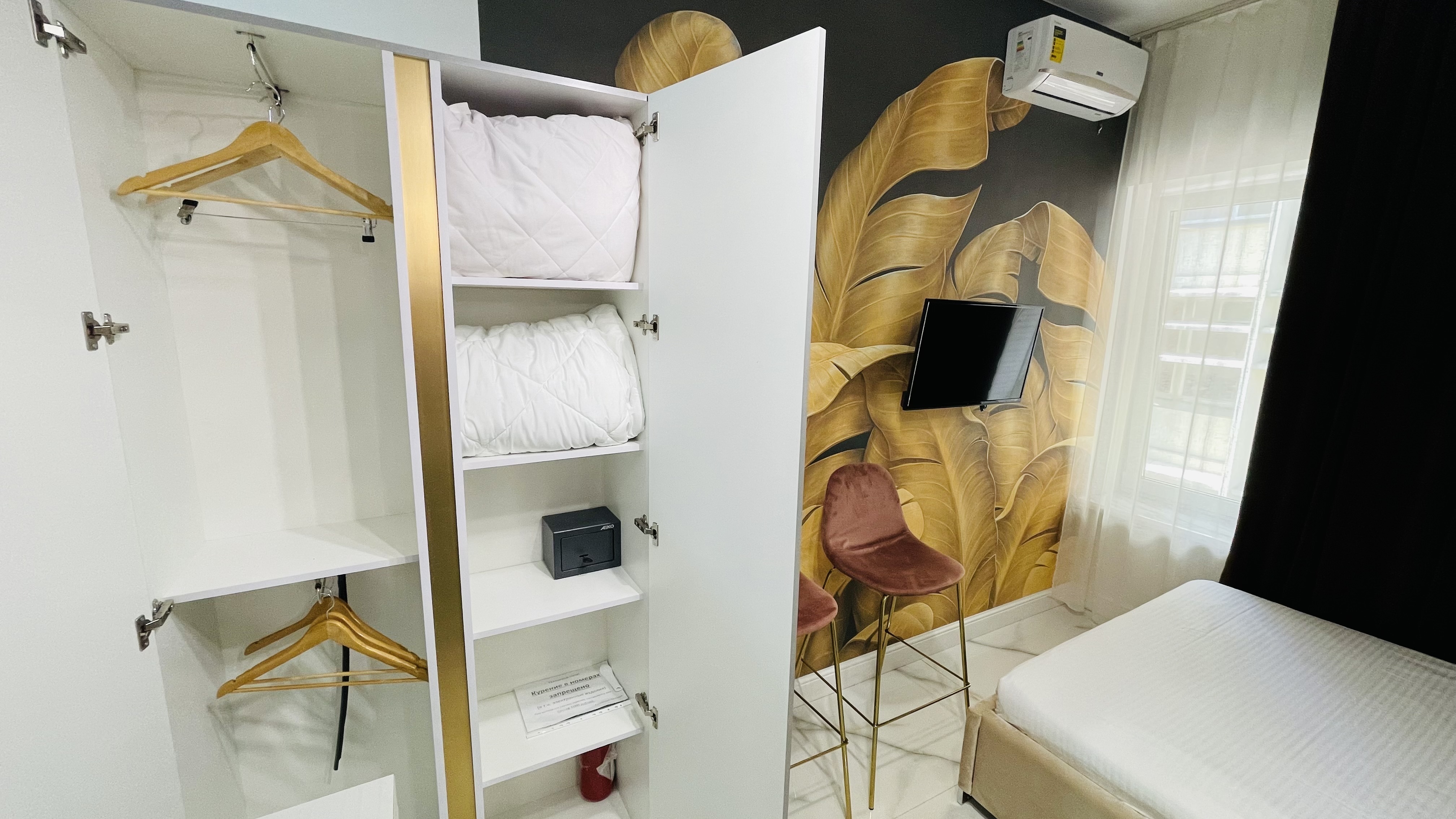 В каждом номере установлен телевизор с плоским экраном, холодильник, кондиционер, микроволновая печь и т. д.