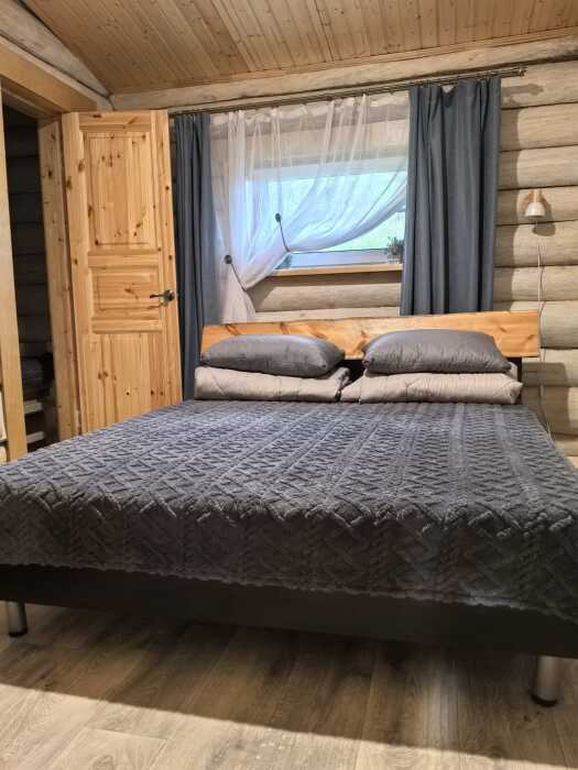 В доме 5 комнат: веранда с двуспальным диваном, гостиная-студия с двуспальным диваном, комната с двумя кроватями, комната с двуспальной кроватью и комната с детской двуспальной кроватью.