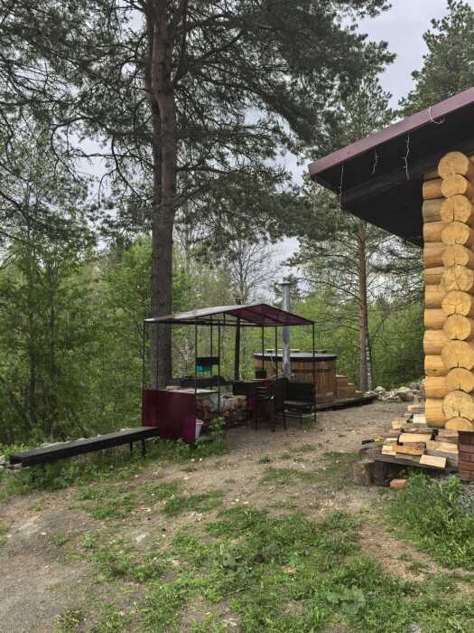 - новые дома из бревна, с камином, печью, баней и купелью, на краю